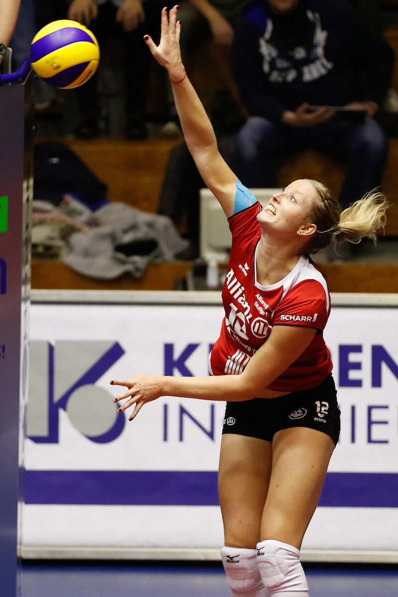 Münster, de ploeg van Britt Bongaerts die dit keer wel alle sets in de basis stond en 6 punten meepakte, kon alleen in de eerste set in de buurt blijven bij het sterke Schwerin. Het werd dus dit keer geen vijfsetter in Münster maar een vlotte 3-0 voor Schwerin.
