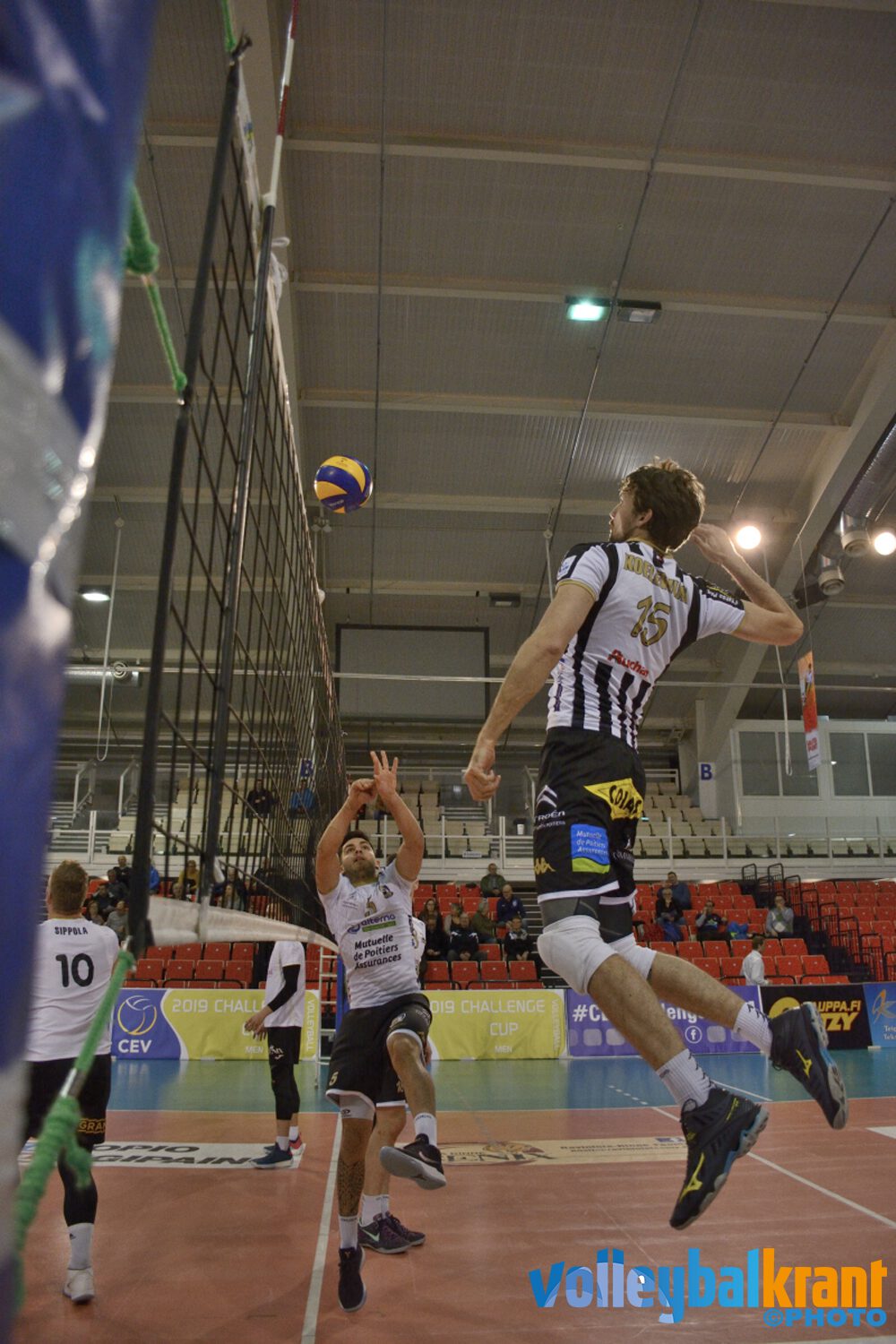 Een Europees niveautje lager was het Poitiers dat hard moest strijden om een plaats bij de laatste acht te verwerven. Na de 3-1 winst thuis op het Finse Rovaniemi waren twee sets winst voldoende, maar die kwamen niet zonder slag of stoot. Poitiers won de eerste twee sets beide met 26-24. Toen plaatsing een feit was werd de derde set met 25-18 gewonnen. Koelewijn speelde de eerste twee sets en kwam tot vier punten.