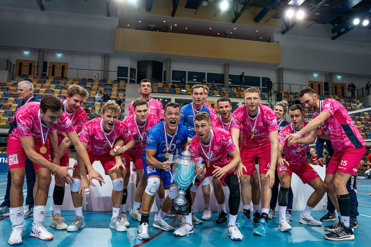 Markus Held, van Samen Lycurgus, hield een beter gevoel over aan de wedstrijd in Apeldoorn. “Een lekkere overwinning hebben we in de pocket”, zei hij. “Weliswaar de minst belangrijke prijs van de drie, wel mooi om te winnen. Anders ga je toch de komende twee of drie weken met een minder gevoel tegemoet. Hier bij Dynamo winnen gebeurt ook niet vaak”, zei hij na afloop. Beide ploegen deden niet veel voor elkaar onder in het duel. “Het viel voor ons alleen niet op zijn plek”, zei Lipke. De eerste set weten we na een 21-24 achterstand nog op een wonderlijke manier te winnen. In de tweede set waren wij niet scherp en domineerde Lycurgus, net als in de derde set. Met het publiek erachter zijn wij set vier goed gestart en winnen we die ook. In de beslissende set staan we bij de wissel met 8-7 voor, daarna hadden we het lastig met weinig side-outs en een sterke blokkering van hen”, geeft Lipke aan die aan zijn eerste seizoen bezig is bij de ploeg uit Apeldoorn. Markus Held zag ploeggenoten Jacob Kern en Luuk Hofhuis het verschil maken in set vijf. “Jacob die veel druk vanaf de servicelijn weet neer te leggen en Luuk Hofhuis stond als een gek te blokken. Lekker.” Jacob Kern werd ook topscorer van het duel met 27 punten. Bij de ploeg uit Apeldoorn scoorde Ramon Martinez-Gion twintig punten.
