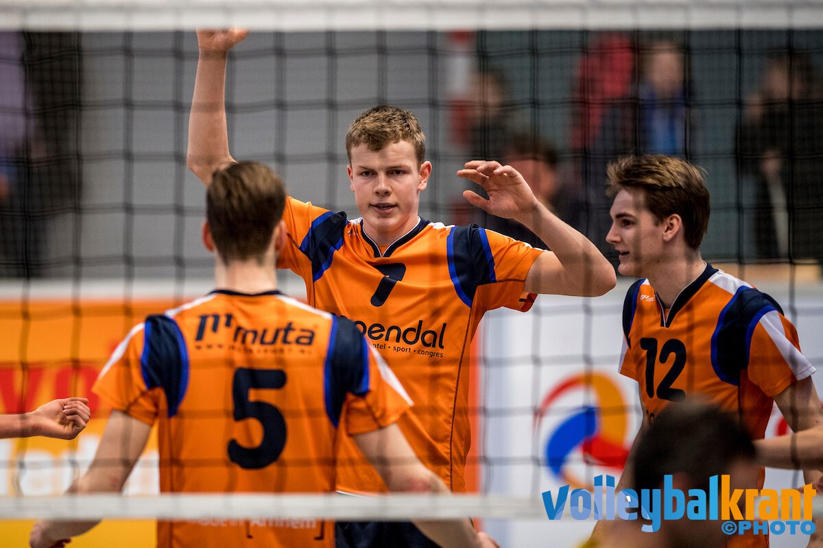 De Doetinchemse selectie moest het in eigen huis doen zonder Joris Marcelis. De talenten gingen goed van start, maar na een time-out in de eerste set was er grote consternatie. Volgens het Talentteam had er 18-21 op het scorebord moeten staan, maar in werkelijk wees de teller de stand 19-20 aan. Door dit meningsverschil lag het spel enige tijd stil, dat uiteindelijk nadelig bleek uit te pakken voor de jongelingen.