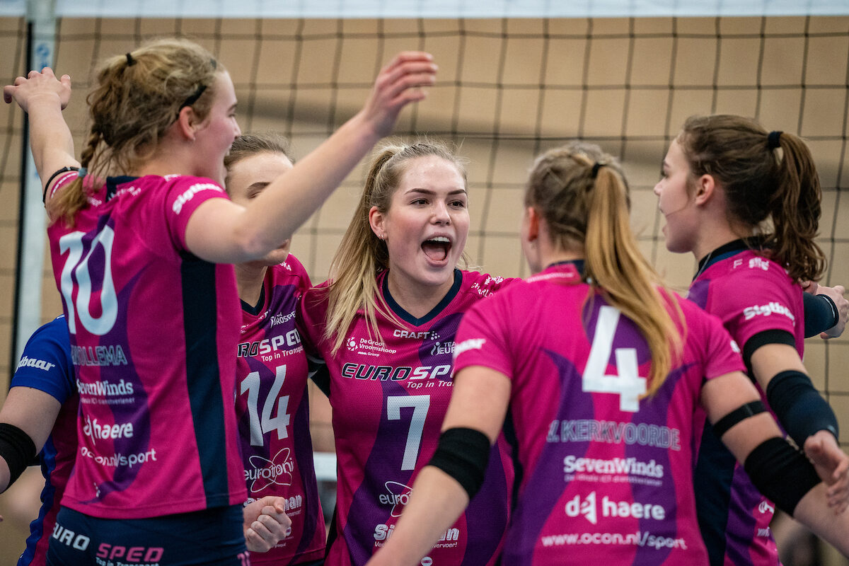 Team Eurosped kon geen potten breken in het bekertoernooi, het verloor in de kwartfinales van Regio Zwolle Volleybal, maar kon dit weekend de koppositie weer verdedigen in de verliezerspoule. Tegen Peelpush was het alleen de eerste set spannend, al had Eurosped het niet zover hoeven laten komen. Met de van een langdurige blessure herstelde Vera Mulder in de basis had de thuisploeg twee kansen om de set binnen te halen. Het spannende tweede setpoint leek door Eurosped verzilverd te worden, maar de bal bleef via de voet van Laura de Jong in het spel. Uiteindelijk werd een dubbelfout gefloten, werd het punt opnieuw gespeeld en maakte Peelpush gelijk. Lang gingen de punten nog over en weer, maar na twee aanvalsfouten van De Jong won Eurosped alsnog de set (31-29).