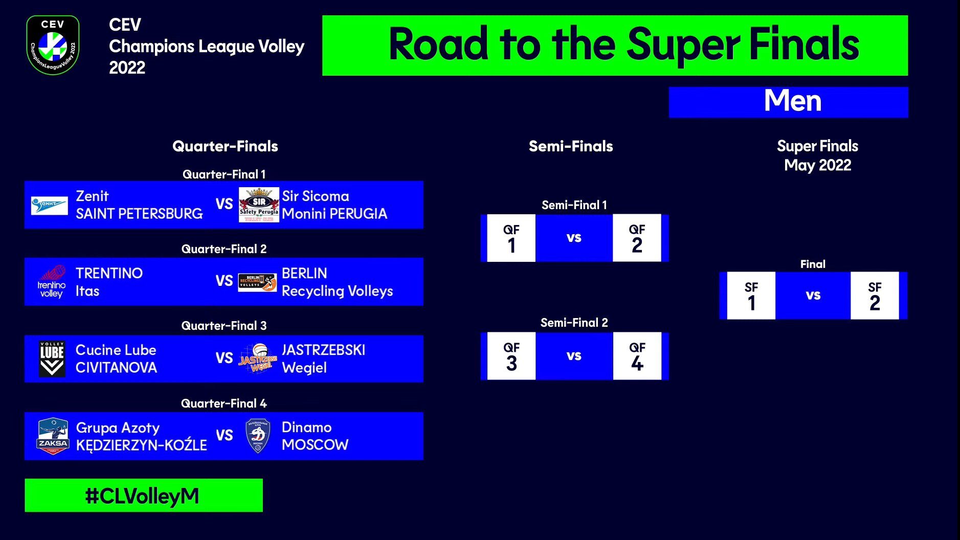 Het wachten was op de loting van vandaag. Met vijf groepswinnaars en de drie beste 'nummers twee' werden vandaag om 13.00 uur de kwartfinales samengesteld. Perugia werd gekoppeld aan Zenit St. Petersburg, de nummer 2 van groep D. St. Peterburg is naar zeggen het Russische team met het grootste budget, maar het kende een moeizame groepsfase. Door blessures van Poletaev en Urnaut werd maar nipt de kwartfinale bereikt. Perugia zal dan ook in de heenwedstrijd een goede prestatie moeten leveren, om vervolgens thuis een plek voor de halve finale veilig te stellen. De datum van de kwartfinales zijn 8 en 15 maart.