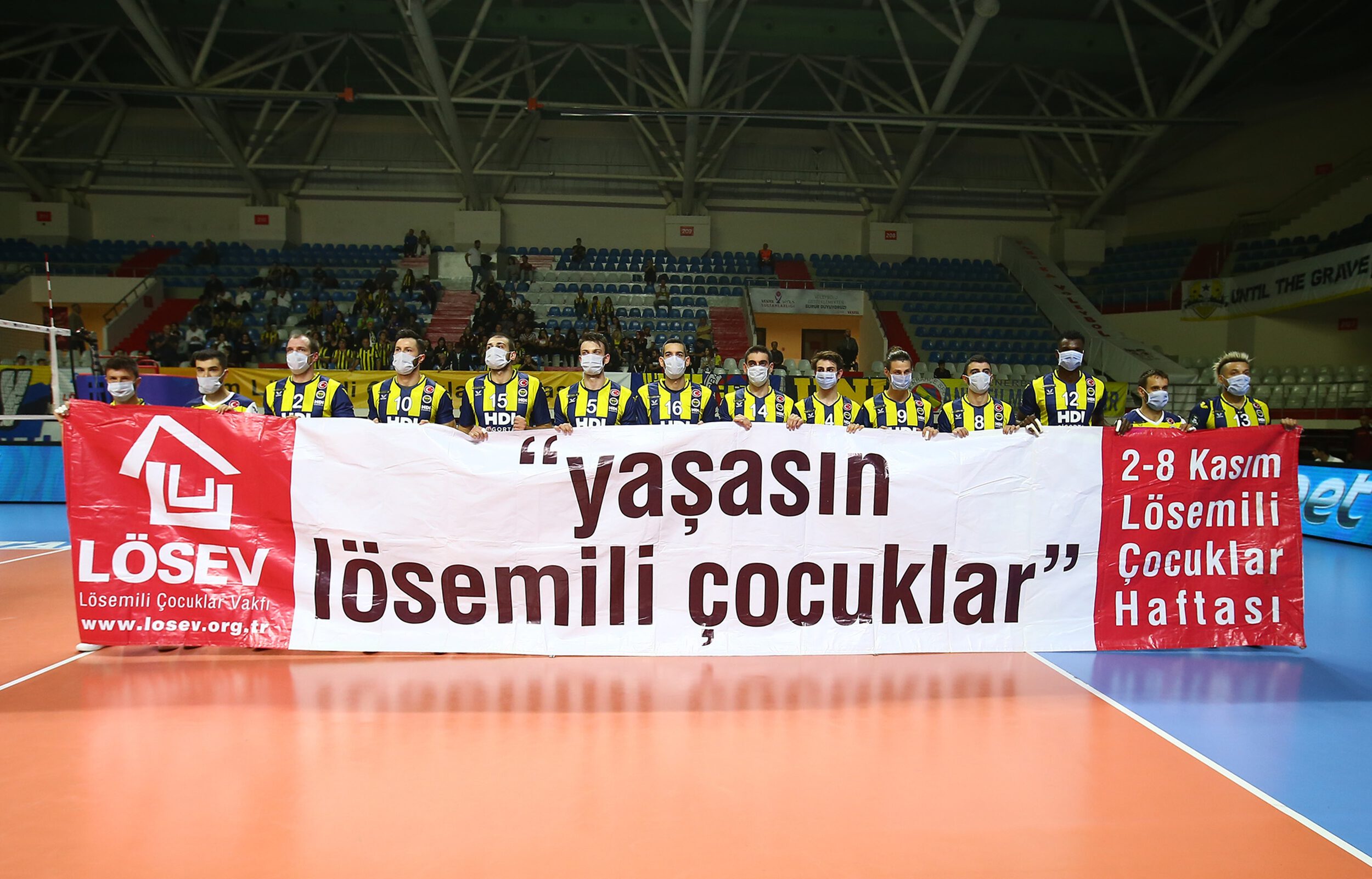 Een bijzonder gezicht voor aanvang van de wedstrijd. Beide teams kwamen met mondkappen, zoals artsen die in het ziekenhuis gebruiken, het veld op. Hiermee werd aandacht gevraagd voor kinderen met leukemie. Het team van Fenerbahçe nam zelfs een groot spandoek mee het veld op waarop stond: ‘Lang leven voor kinderen met leukemie’.