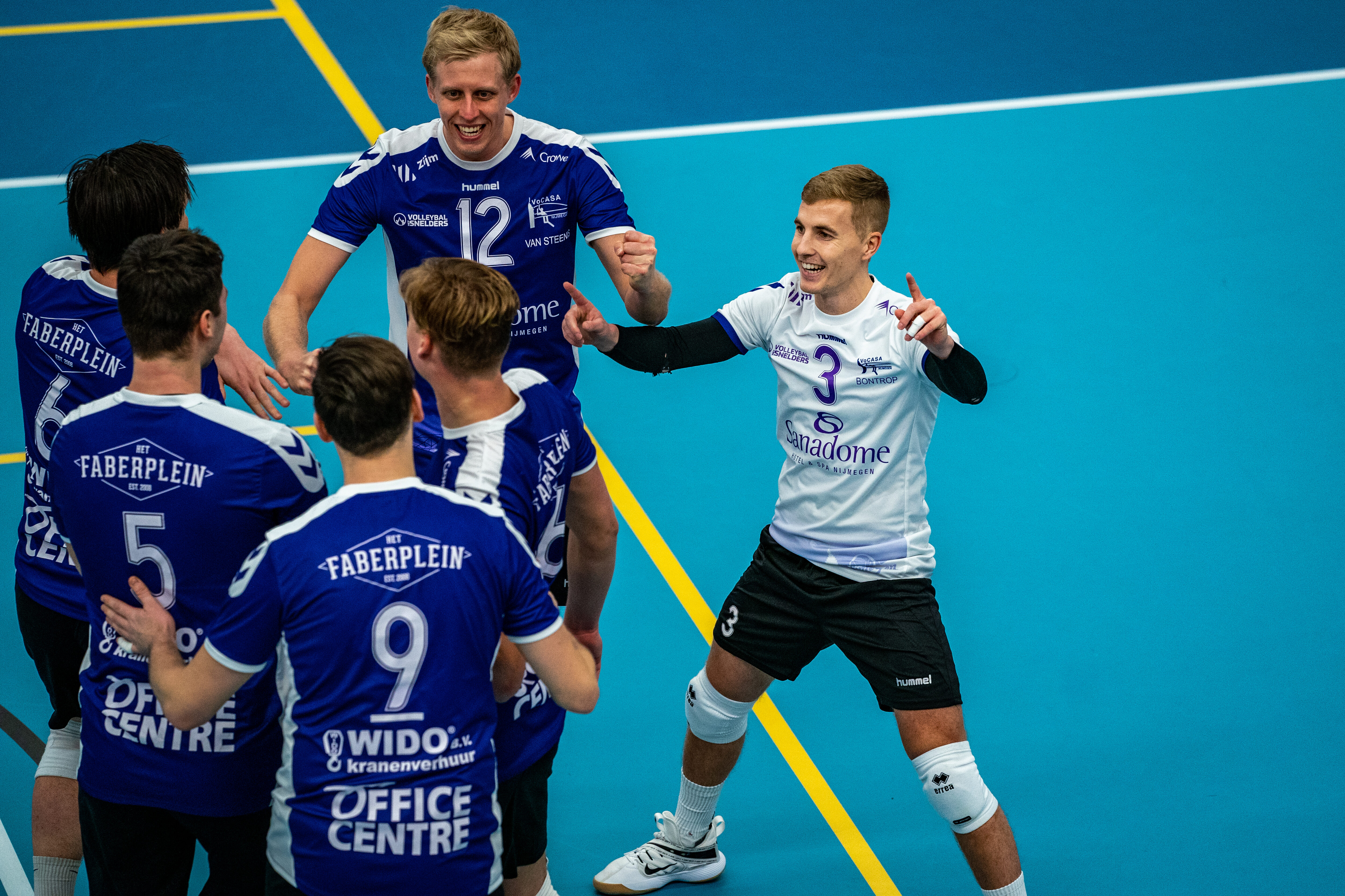 Meest interessante ontmoeting van de zaterdagavond was die tussen VoCASA uit Nijmegen en Simplex/SSS. Simplex/SSS, dat zich behoorlijk versterkte deze zomer, was vastberaden de punten mee terug naar Barneveld te nemen. Echter was het de ploeg uit Nijmegen die daar een stokje voor stak. Vanaf punt 1 domineerde de ploeg van trainer-coach Erik Gras de wedstrijd en gaf dit niet meer uit handen. De vele meegereisde supporters uit Barneveld probeerden hun ploeg vocaal moed toe te zingen, maar ook dit mocht niet baten. Met 25-17, 25-20 en 25-17 bleven alle punten na een uur en een kwartier spelen in Nijmegen. Topscorer van de wedstrijd, met 19 punten, en tevens aanvoerder van VoCASA Tom van Steenis is blij met het niveau dat zijn ploeg op de mat heeft gelegd: ''Ik denk dat de hoge potentie van deze ploeg vandaag duidelijk zichbaar is geworden. Dat zegt verder niets over het vervolg van de competitie voor ons, maar het spel wat wij vandaag als collectief op de mat hebben gelegd wekt bij mij wel een euforisch gevoel op. We waren op alle vlakken beter.''