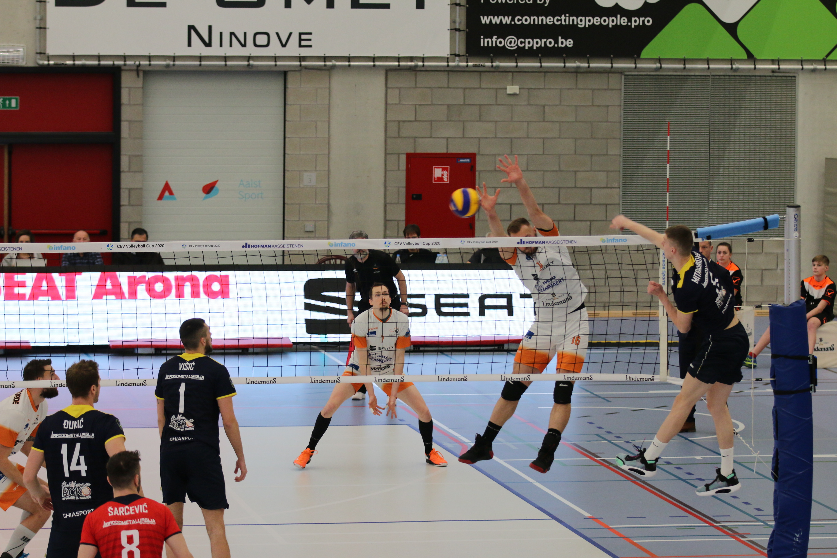 Aalst had de uitwedstrijd in Kroatië met 3-2 gewonnen en wist dus dat er thuis ook gewonnen moest worden voor directe plaatsing. Net zoals in de eerste ontmoeting waren beide teams aan elkaar gewaagd. De openingsset werd op details beslist, met Aalst aan de goede kant van de score (25-23). De gasten kwamen daarna wel op gelijke hoogte met een ruime setwinst (25-18).