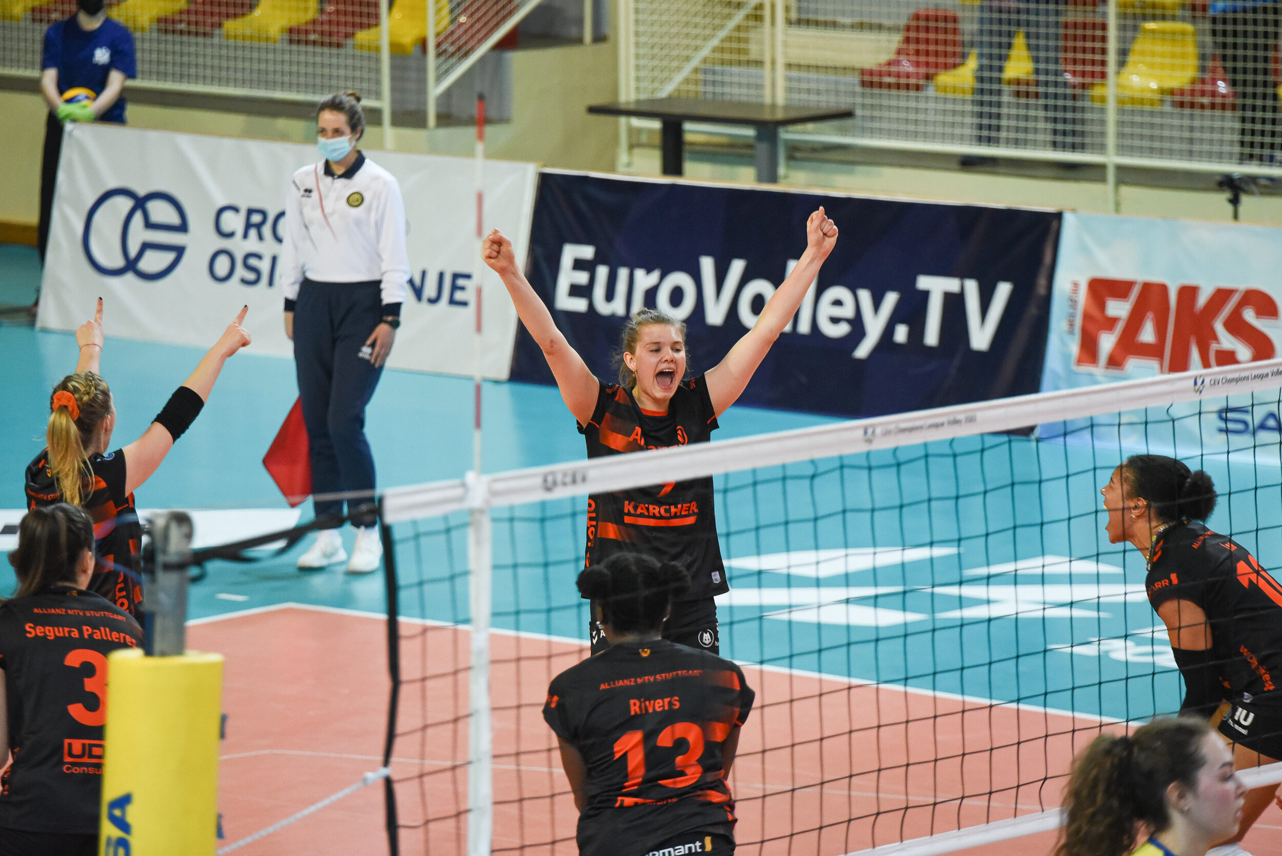 In de halve finales trof Allianz MTV Stuttgart een Kroatische tegenstander. In het tweeluik met Mladost Zagreb, met een selectie die voornamelijk bestaat uit speelsters uit eigen land, bleek Stuttgart in beide wedstrijden de sterkste. In de uitwedstrijd moest het nog een set inleveren (18-25, 25-21, 15-25, 22-25), maar in eigen huis bleek de koploper uit de Bundesliga oppermachtig. In een volle sporthal in Stuttgart heerste de thuisploeg vanaf het begin tot het eind en met name aanvallend (50 om 21 scores) was Stuttgart vele malen beter. Dat zorgde ervoor dat Stuttgart al na twee sets zeker was van de finaleplaats, maar desalniettemin liet de Duitse formatie ook in de laatste set zien een stuk sterker te zijn (25-16, 25-13, 25-10). De beide Nederlandse middens hadden een basisplaats en lieten in scorend opzicht van zich horen. Juliët Lohuis scoorde 12 punten (2 aces, 80% aanval) en Eline Timmerman kwam in twee sets tot 9 punten (3 killblocks, 80% aanval).