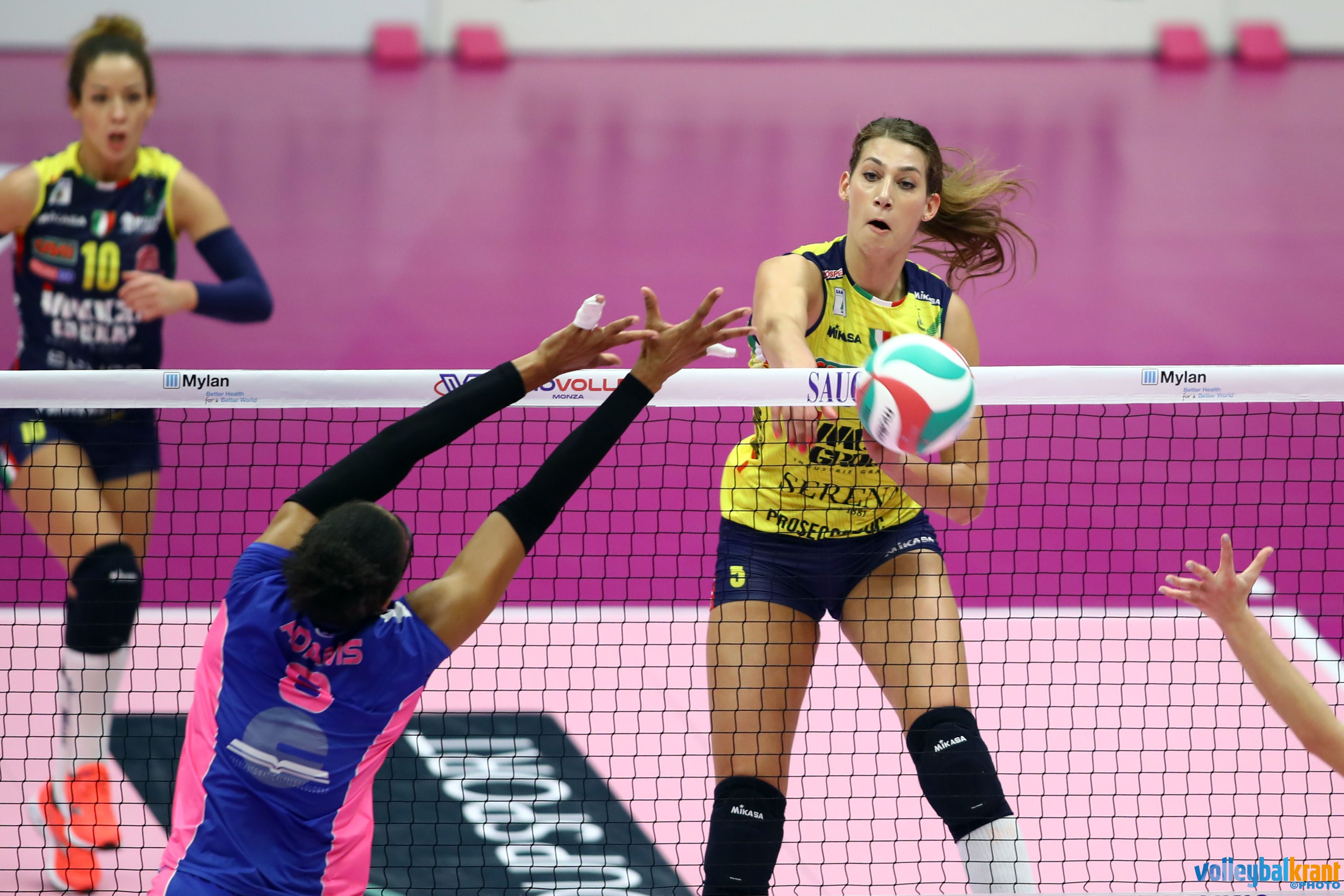 Novara leidt de ranglijst met 17 punten uit zes wedstrijden. De ploeg liet nog maar één punt liggen, in de met 3-2 gewonnen wedstrijd tegen Club Italia eerder deze maand. De ploeg won vier keer overtuigend met 3-0 en één keer met 3-1. Conegliano heeft één wedstrijdminder gespeeld en behaalde in de vijf gespeelde wedstrijden steeds de maximale score met 3-0. In de eerste twee wedstrijden bleef Robin de Kruijf nog aan de kant omdat zij nog herstelde van haar knieoperatie dit voorjaar. Door die blessure miste ze ook het WK in Japan. Ze maakte haar rentree op 3 november tegen Monza, de ploeg van de eveneens geblesseerde Anne Buijs. De Kruijf drukte meteen haar stempel op het spel van Conegliano, door hoge scoringspercentages. Als de thuisploeg bij een 3-0 of 3-1 overwinning drie punten pakt, neemt het de koppositie over van Novara. Bij een 3-2 uitslag blijft Novara leider. Busto Arsizio staat op dit moment 2e, met evenveel punten als Novara. Die ploeg komt zondag pas weer in actie.