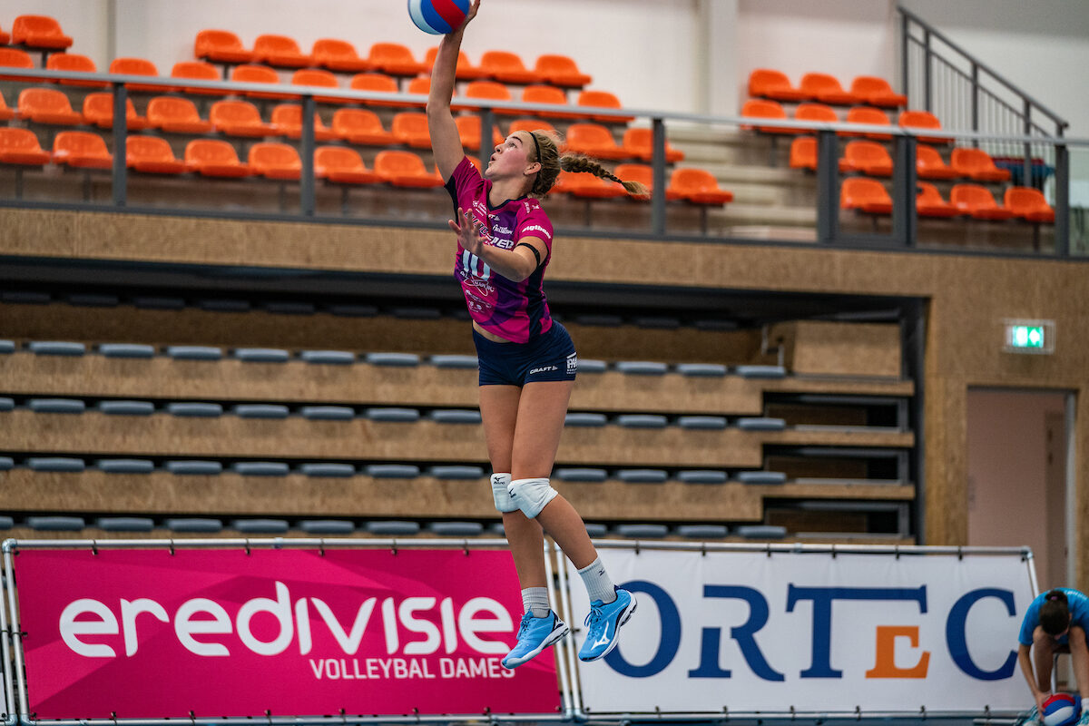 Ambities heeft de jonge passer-loper, die ook als diagonaal uit de voeten kan en vroeger zelfs nog op het midden speelde, zeker. “Mijn doel is om uiteindelijk het hoogste niveau te halen bij een topclub in het buitenland. Spelen voor het Nederlands damesteam zou ik ook echt mooi vinden. Om daar te komen moet ik natuurlijk nog heel veel trainen en er veel voor laten, maar dat heb ik er zeker voor over!,” vertelt Knollema ambitieus. Om zichzelf te ontwikkelen, kijkt ze wel eens naar teams en speelsters uit het buitenland. “Ik kijk naar speelsters op Volleymetrics, een programma dat we bij Eurosped gebruiken om tegenstanders te analyseren. Ook kun je daar teams en speelsters uit bijvoorbeeld Duitsland en Italië bekijken. Ik kijk niet specifiek naar één speelster, aangezien ik het leuk vind dat er verschillende types zijn die allemaal anders bewegen en volleyballen. Dan probeer ik op training soms slagbewegingen of tipballen die ik heb gezien en zo krijg ik een soort eigen stijl.”