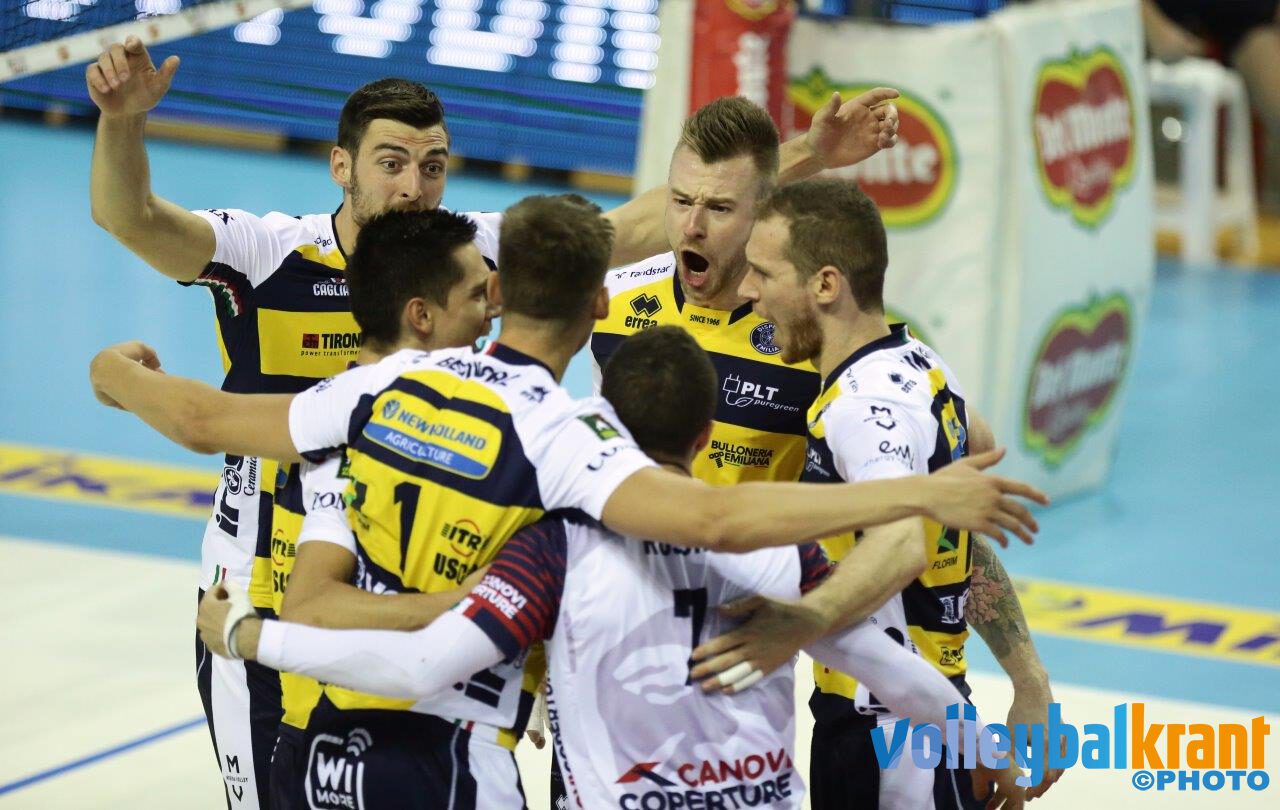 Een vol PalaBarton heeft lang moeten wachten om hun nieuwe superster Wilfredo Leon te zien spelen. De Cubaan die voor zijn vorige werkgever Zenit Kazan meerdere Russische kampioenschappen en Champions League-bekers bij elkaar sloeg zou Perugia naar nog grotere hoogtes moeten slaan. Het thuispubliek kwam echter bedrogen uit. Trentino ging er met de zege vandoor. En hoe. De vernieuwde ploeg van Angelo Lorenzetti had vanaf punt één grip op de aanvallers van Perugia. De voorsprong bleef de hele set staan en zo was de eerste set verrassend voor de bezoekers. Ook in set twee kreeg De Cecco de aanvallers van Perugia niet in ritme en ging deze op identieke wijze naar Trentino Volley. Set drie leek wederom slecht af te gaan lopen voor Perugia, totdat eindelijk Leon zijn klasse liet zien. Met vier achtereenvolgende opslagen van boven de 125 km/u kreeg hij het publiek uit de banken. Een ommekeer leek te komen, maar Trentino maakte op zijn beurt belangrijke breakpoints. Toen een uitblinkende Grebennikov een onmogelijke bom van Leon binnen de drie meter van de grond haalde was het duidelijk dat Trento door zou gaan naar de finale: 0-3. Bij Trentino stond Maarten van Garderen een groot deel van de derde set binnen de lijnen en Sjoerd Hoogendoorn kwam voor Perugia eenmalig voor het blok binnen de lijnen.