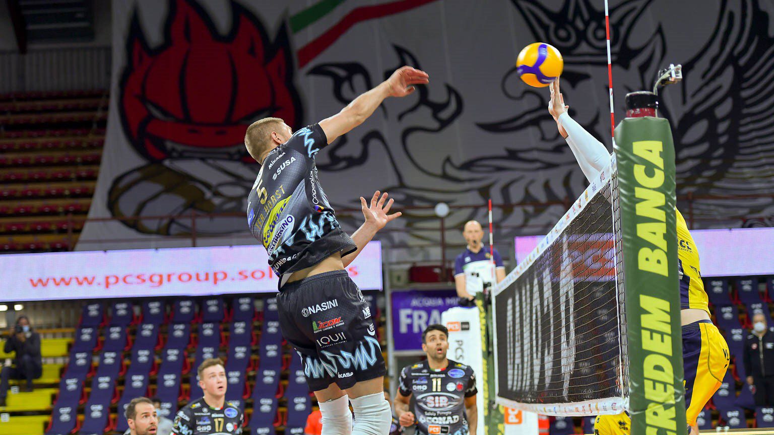 Gisteren werd er weer ruimte gegeven aan Alekander Atanasijević op de diagonaal. De aanvoerder lijkt zo goed al terug van een knieblessure en hij nam zijn team op sleeptouw tegen het sterke Piacenza. Piacenza moest het doen zonder diagonaal Georg Grozer, die afgelopen week geblesseerd raakte. Ondanks het feit dat de bezoekers met drie pass/lopers in het veld stonden, was wederom de servicedruk hoog. Maar 11% van de passes kwam maar goed in de handen van spelverdeler Baranowicz, wat het aanvallend moeilijk maakte voor de bezoekers. Perugia speelde daarentegen een nette side-out en domineerde de wedstrijd. Met 25-20, 25-19 en 25-15 werd een op papier sterk Piacenza makkelijk aan de kant gezet. Atanasijević werd met 15 punten (61 aanval) MVP van de wedstrijd.