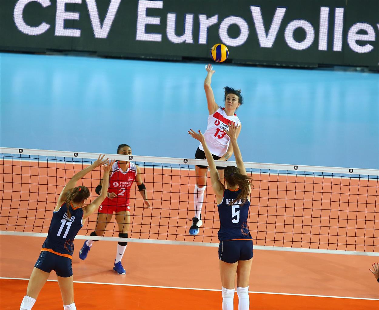 Het is natuurlijk in eerste instatie het gevecht om een plaats in de halve finale van het EK. Oranje bereikte de kwartfinale zonder ook maar één set te verliezen. Turkije had het een stuk lastiger. In de poule werd één keer verloren, met 3-1 van wereldkampioen Servië. Dus dat is geen schande. Maar de ploeg van Giovanni Guidetti had ook moeite om Finland onder de knie te krijgen (3-2). En ook tegen Bulgarije werd een set weggegeven. In de achtste finale kroop Turkije zelfs door het oog van de naald tegen Kroatië, de ploeg waar Oranje in de poule met 3-0 mee had afgerekend. De Turken hadden 5 sets nodig en wonnen de beslissende nipt met 16-14.