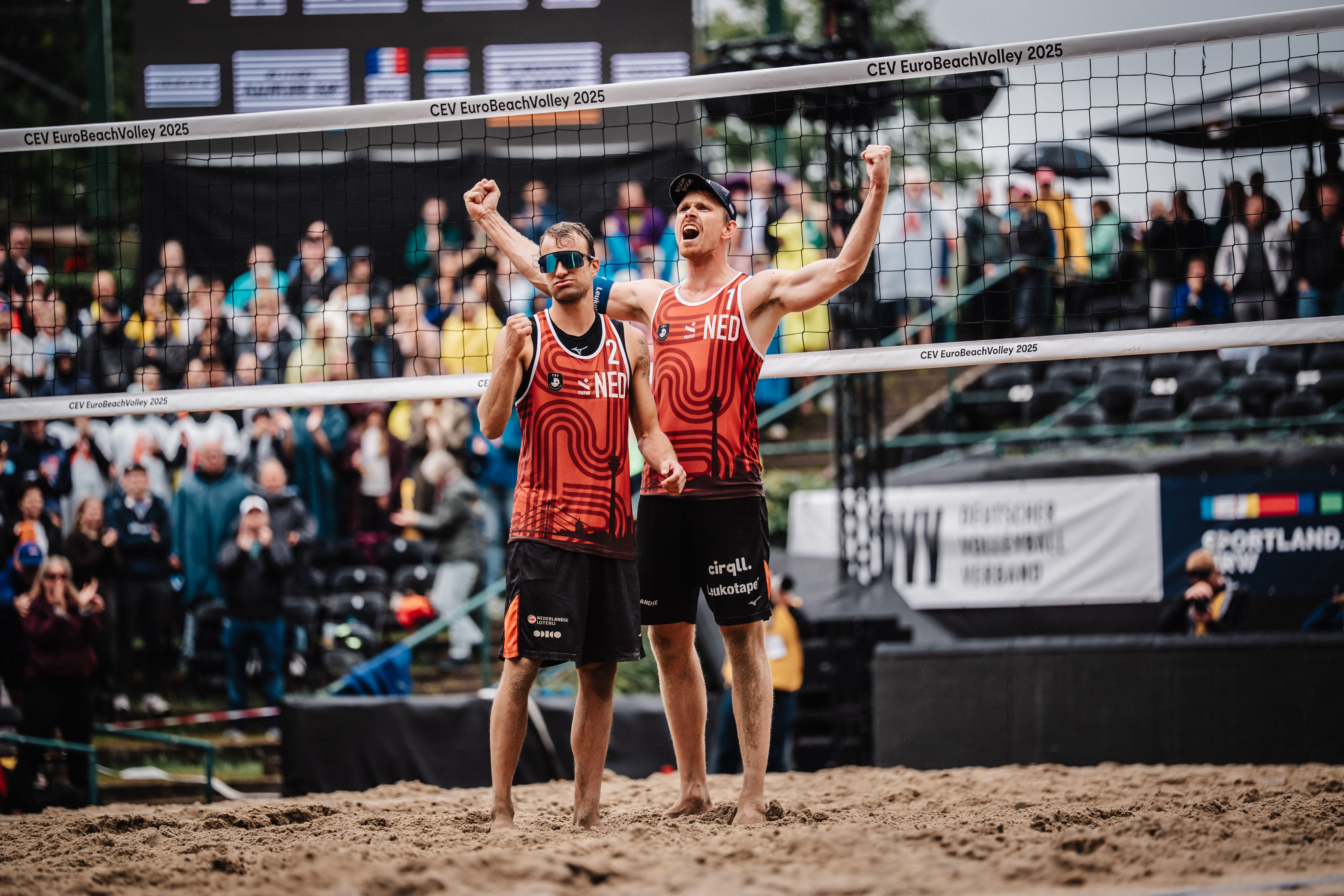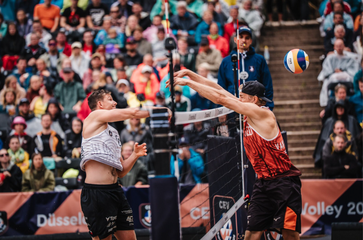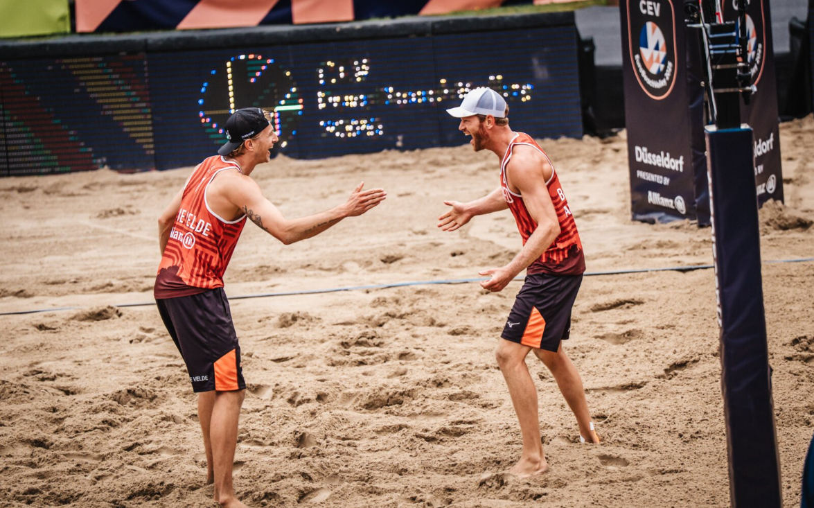 Nederland staat bij de mannen met twee beachvolleybalduo's in de halve finale van het EK! Zowel Boermans/De Groot als Brouwer/Van de Velde wisten vandaag in Düsseldorf hun kwartfinalepartij te winnen. Boermans/De Groot had daar tegen Frankrijk een half wonder voor nodig, terwijl Brouwer/Van de Velde knap de wereldkampioenen versloegen. Morgen wordt er gestreden om de medailles!