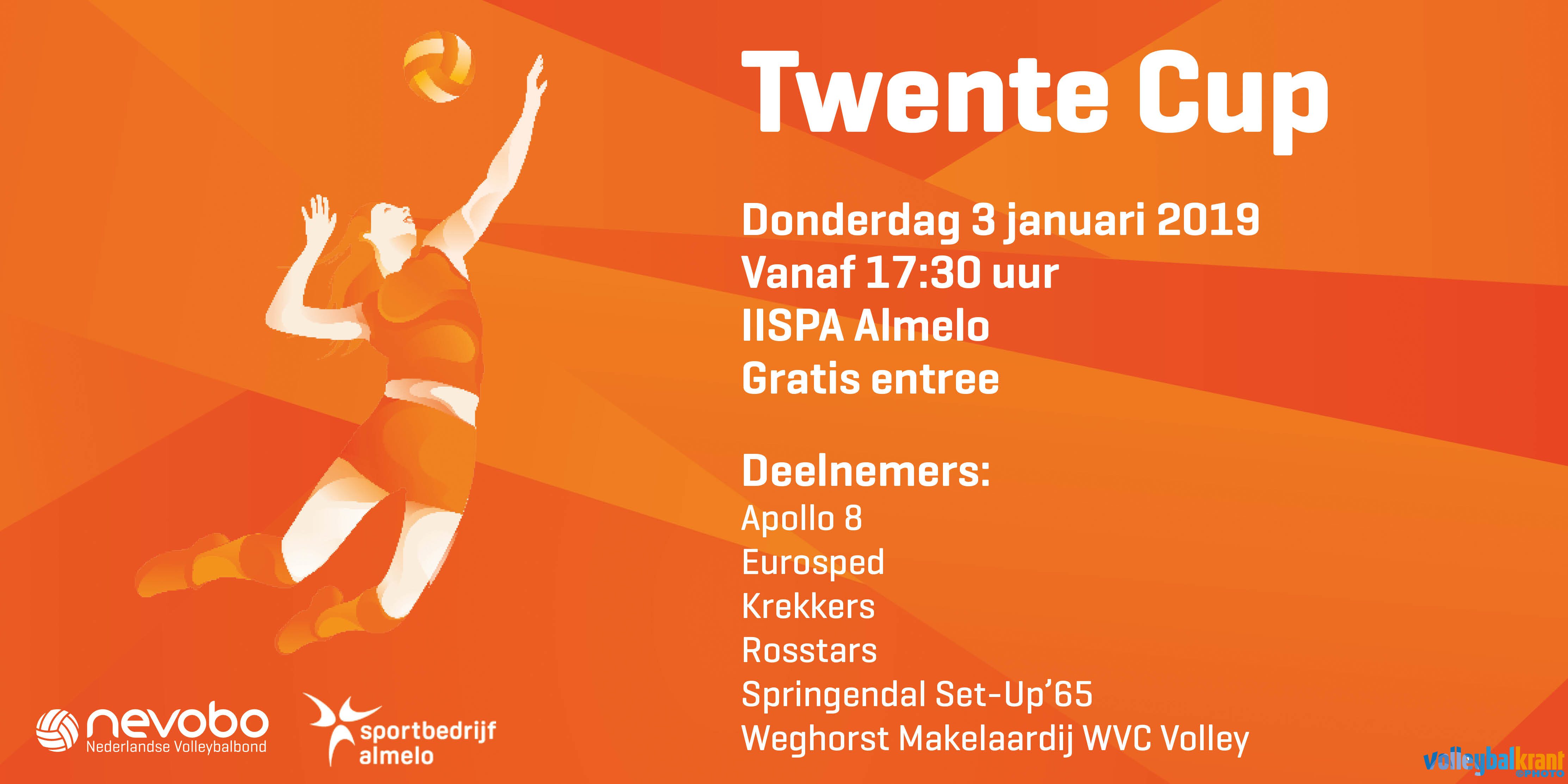 Op donderdagavond 3 januari wordt in de IISPA te Almelo voor de tweede keer de Twente Cup voor vrouwen georganiseerd. Vorig jaar speelden vier van de beste teams van Twente, waaronder Eredivisionist Eurosped op 4 januari een succesvol toernooi waar ongeveer 400 man publiek op af kwam. Ook dit jaar hebben de Nevobo en sportbedrijf Almelo weer de handen ineen geslagen om in volleybalbolwerk Twente, met ontzettend veel topteams binnen de grenzen, de teams te enthousiasmeren om deel te nemen. Dit resulteerde in een fantastisch deelnemersveld.