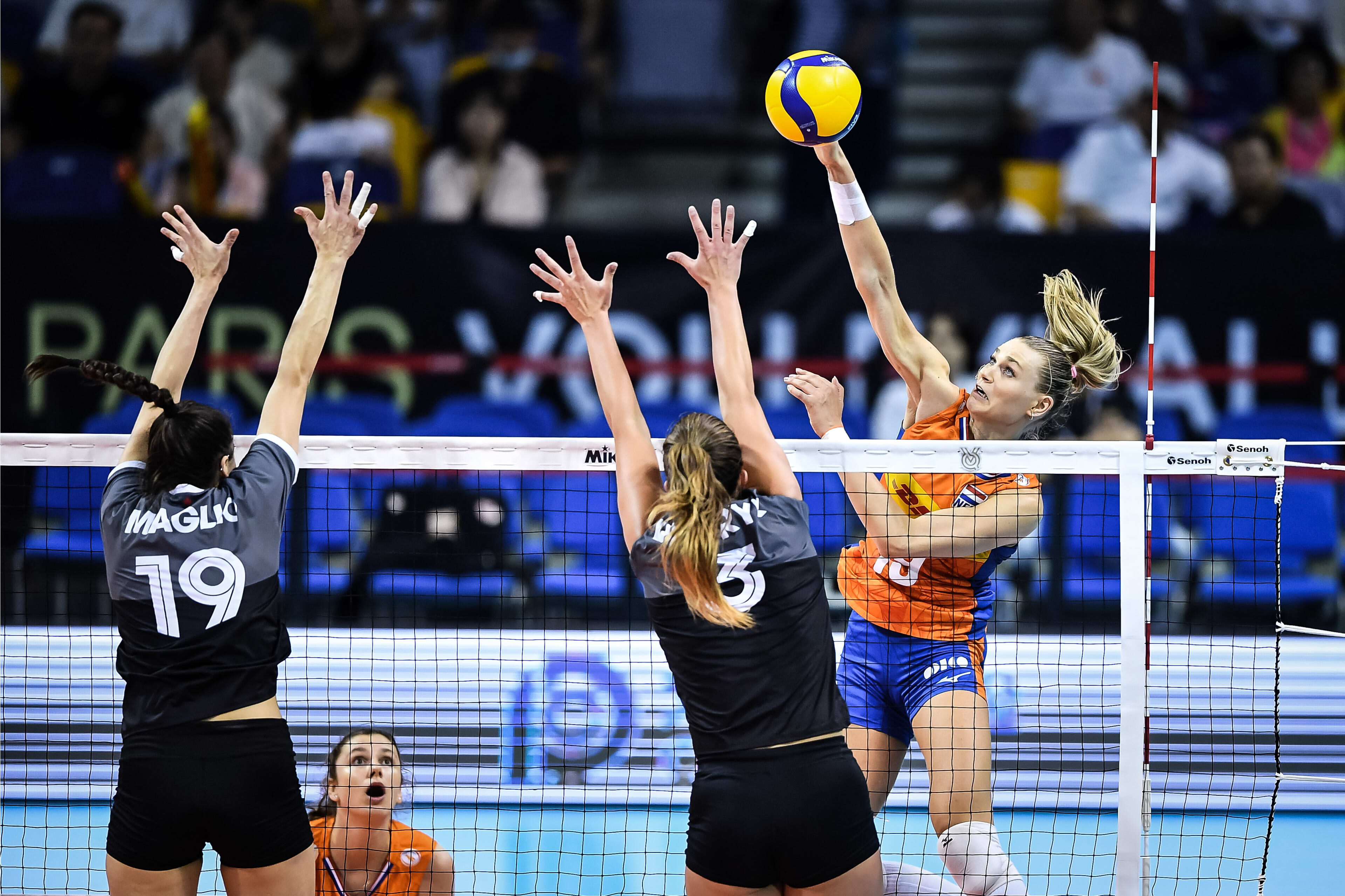 In een toernooi waar slechts twee landen als winnaar uit de bus komen, is elke wedstrijd cruciaal. Tegen Canada, een team van gelijkwaardig niveau en direct bij de start van het toernooi, was deze eerste wedstrijd wellicht van nog groter belang. De eerste set liet meteen zien hoe klein het verschil tussen beide landen is. Pas boven de dertig punten werd de set beslist in het voordeel van Canada, dat meerdere setpoints van Nederland wist weg te werken aan de hand van Kyra van Ryk en Alexa Gray en uiteindelijk de set wist te winnen (30-32). Daarna nam Nederland, met dezelfde basisopstelling als waarmee het brons won op het EK, het initiatief in handen. Betere servicedruk en dankzij een goede blokkering kwam Nederland overtuigend langszij en zelfs op voorsprong (25-19, 25-15). Canada leek rijp voor de sloop, maar niets was minder waar. Het team van Shannon Winzer, één van de weinige vrouwelijke bondscoaches in het topvolleybal, speelde fel en lieten de Volleybaldames dit keer kansloos (17-25).