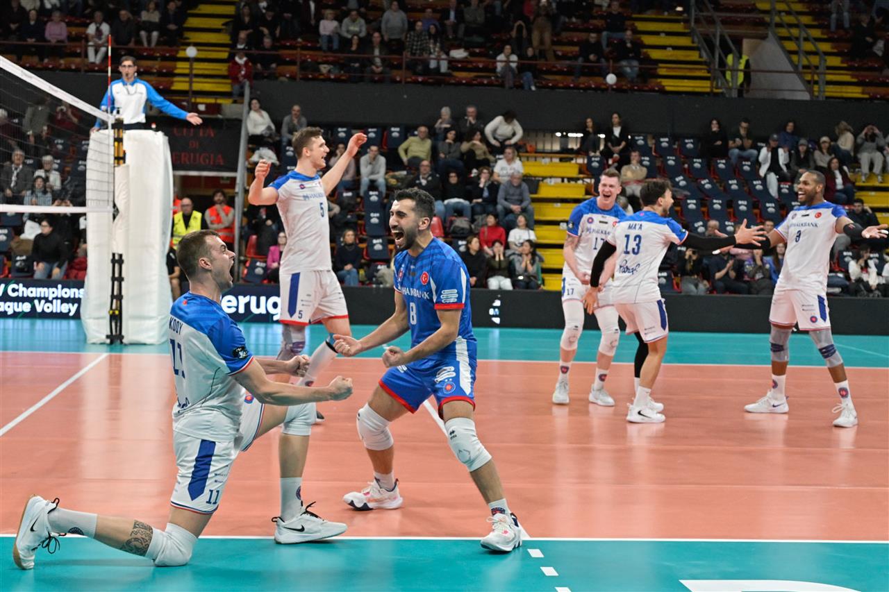 Kooy als tweede door, Ahyi uitgeschakeld De andere (geboren) Nederlander die de laatste 11 teams van de Champions League gehaald heeft is Dick Kooy. Hij wist gisteren met Halkbank knap het Italiaanse Perugia (in Perugia) met 2-3 te verslaan. Halkbank zat in dezelfde groep als St. Nazaire en door de overwinning werd de ploeg met 11 punten tweede in de groep. Kooy maakte 16 punten (46% aanval, 2 aces en 2 killblocks). Halkbank zal het in de Play Off opnemen tegen Milaan van ex-bondscoach Roberto Piazza.