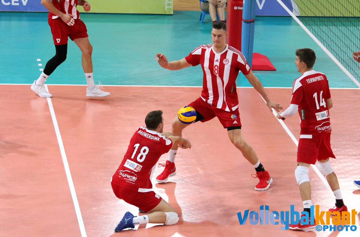 Olympiacos Piraeus moest er in Wit-Rusland tegen Shakhtior Soligorsk hard aan trekken om kwalificatie voor de achtste finale al in de reguliere wedstrijd af te dwingen. Jeroen Rauwerdink en consorten verloren de eerste set met 25-18 en moesten flink bijschakelen om een golden set te voorkomen. De tweede en derde set werden met minimaal verschil gewonnen (27-29, 24-26). De 2-1 voorsprong betekende dat ze na de 3-0 winst van vorige week door waren naar de volgende ronde. Rauwerdink speelde alleen de eerste drie sets en kwam tot 75% score in zijn aanval, wat negen punten opleverde.