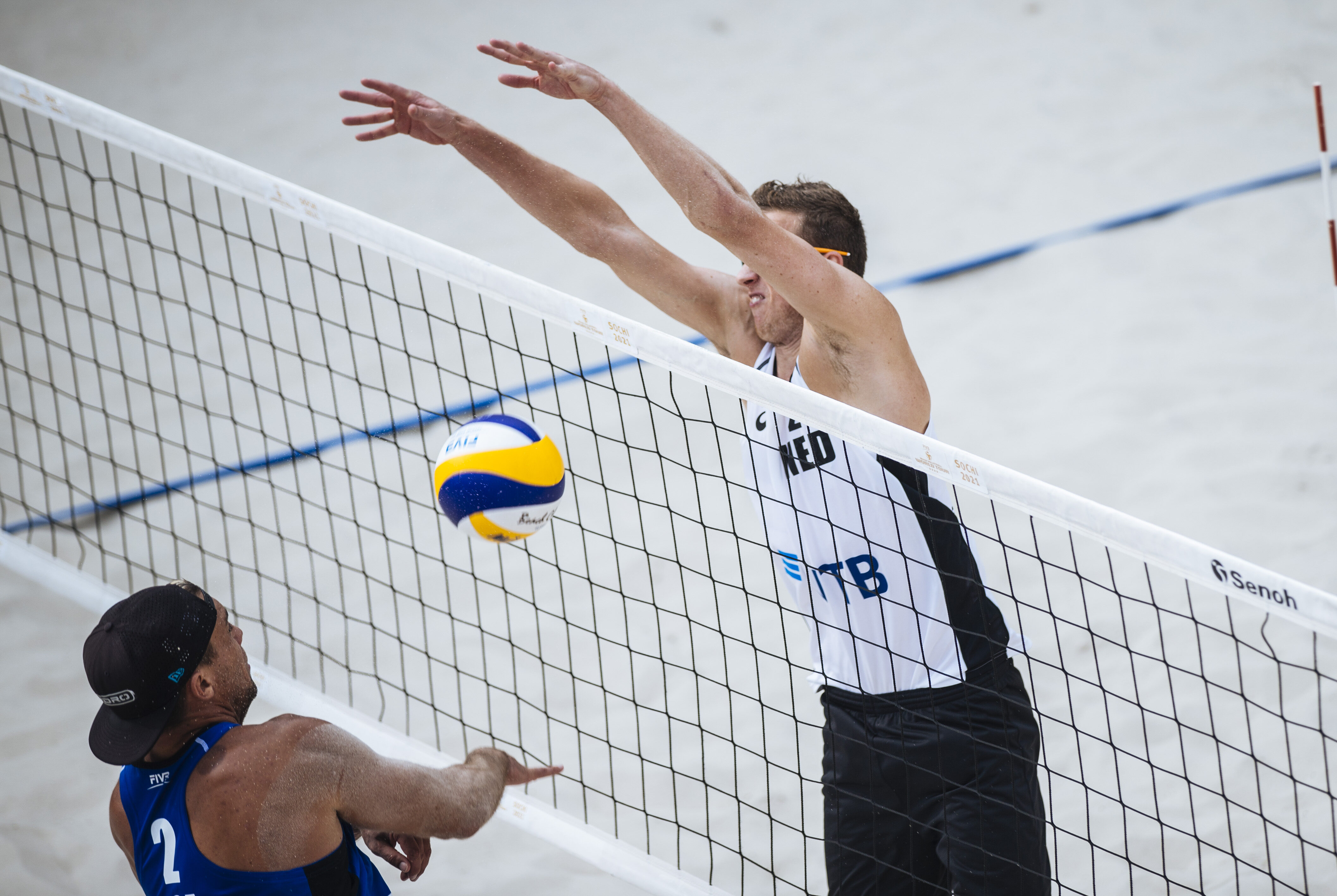 Hierin stond het tegenover Bourne en Crabb. Het ging gedurende de eerste set op centrecourt lang gelijk op, tot dat Christiaan met een monsterblok te sterk was voor de aanvaller (18-16). Kort daarna zorgde Steven na een lange rally voor een verwoeste tegenaanval en wist het op 20-16 dat het goed zat. Nederland pakte de set met 21-19. Het begin van de tweede set verliep prettig voor de Varenhorst/Van de Velde toen het kon profiteren van foutjes aan Amerikaanse kant (5-2 en 11-7). Halverwege de set was het zichtbaar fitter en gaven de Nederlanders nog even extra gas. Het werd zelfs 18-10 en er kon stiekem al aan de halve finale gedacht worden. Ze klaarden de klus in de tweede set met 21-12. Morgenochtend spelen ze tegen de sterke mannen uit Qatar Cherif/Ahmed.