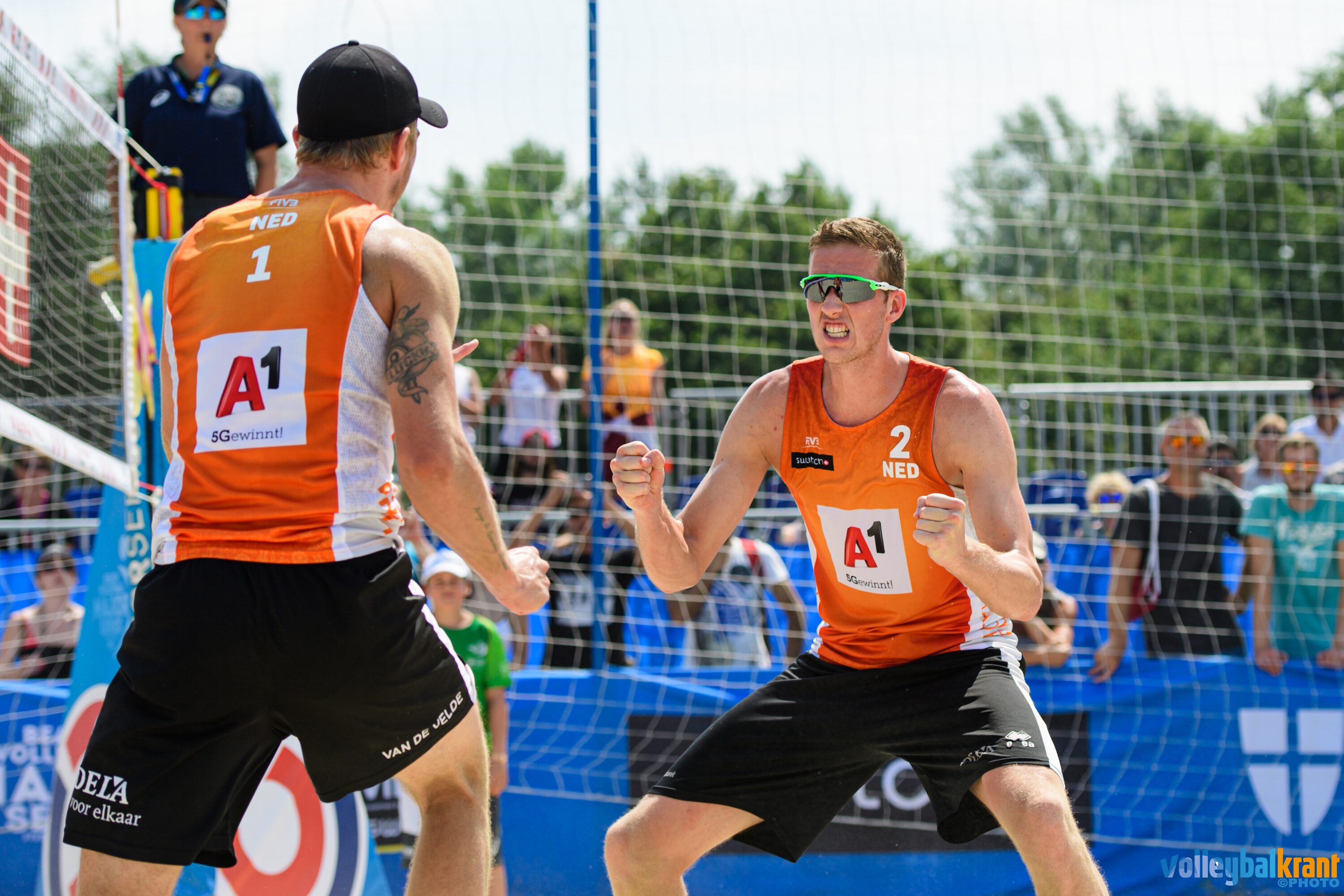 Toen een maand geleden de plaatsingslijst van Wenen uitkwam, troffen we opvallend genoeg ook Brouwer/Meeuwsen in de kwalificaties aan. Na een slechte start van het seizoen hadden Alexander en Robert niet genoeg punten voor directe plaatsing. Dit was de eerste keer sinds zes jaar dat de Nederlanders niet direct in het hoofdtoernooi zaten. De goede resultaten van de afgelopen weken (zilver in Gstaad en brons in Tokio) telden dus niet mee. In hun eerste kwalificatiewedstrijd won het overtuigend van Tsjechië. Vandaag moest Brouwer/Meeuwsen het opnemen tegen het Duitse duo Erdmann/Winter. De eerste set ging gelijk op, maar zette Nederland op het juiste moment aan (22-20). In set twee keek het al snel tegen een voorsprong aan en deed het met degelijk spel de wedstrijd op slot. Zo zien we ook Brouwer/Meeuwsen ‘gewoon’ in het hoofdtoernooi morgen.