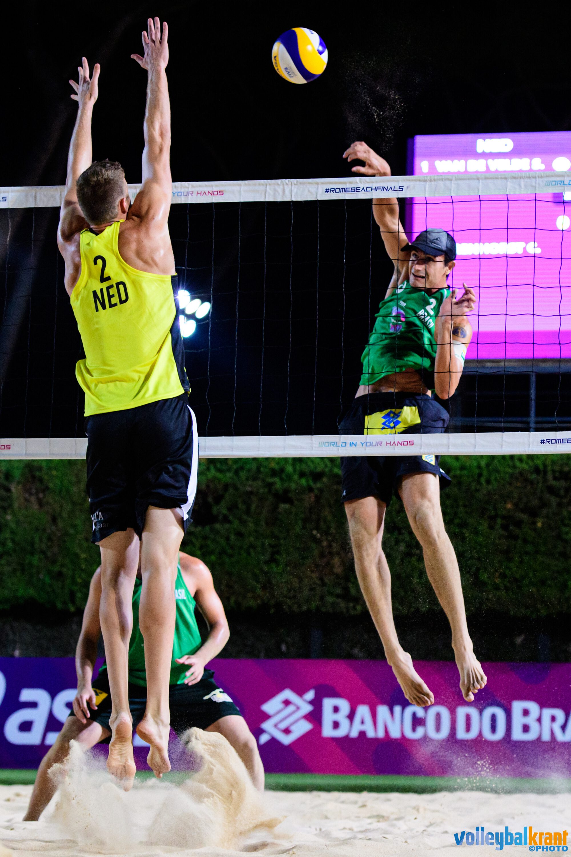 Alexander Brouwer en Robert Meeuwsen kwamen ook twee keer in actie. Wedstrijd één was een hele lekkere om mee te beginnen. Oostenrijk, dat zich gisteren in de kwalificatie wist te plaatsen, werd even door onze Nedelanders op haar plek gezet. Ze kwamen niet verder dan dertien en vijftien punten gedurende de twee sets. Met winst op zak speelden ze gisteravond in het warme Rome tegen twee toppers uit Brazilië; Evandro en Bruno Schmidt. Rond de klok van 21.15 begonnen vier wereldkampioenen (Brazilië weliswaar met andere partners) aan hun tweede poulewedstrijd, met de winst in de groep als inzet. Het werd een wedstrijd met veel geweld, vooral vanaf de servicelijn. In de allesbeslissende derde set was de servicedruk van Brazilië net wat hoger dan dat van Brouwer/Meeuwsen, en zo eindigden de Nederlanders nipt tweede in hun poule (12-15).