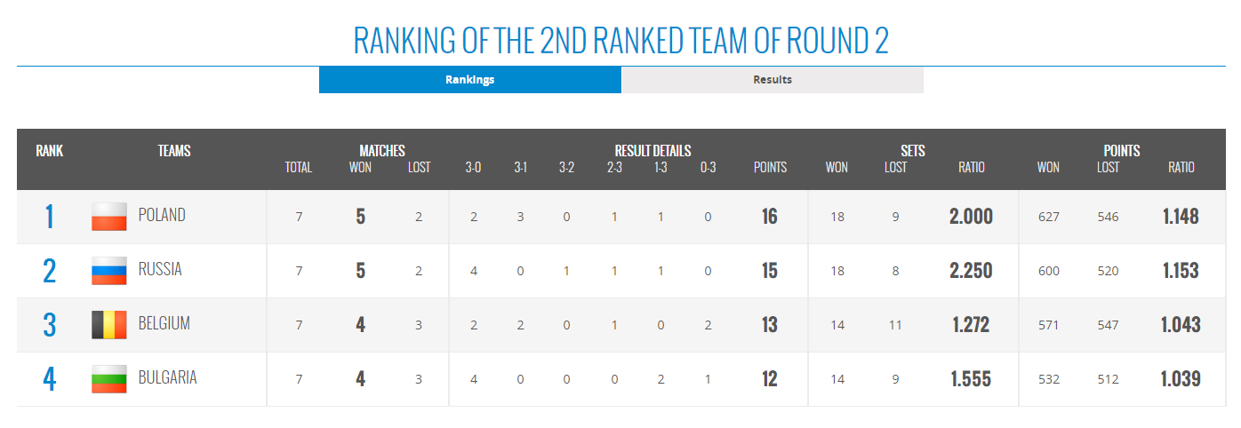 De laatste wedstrijden van de tweede poulefase staan vandaag op het programma. Toch zijn vier van de zes tickets voor de derde ronde al verdeeld. Rusland, Nederland, België, Bulgarije, Polen en Frankrijk zijn theoretisch allemaal nog in de race voor de laatste twee plekken. Finland, Slovenië, Australië, Iran, Canada, Argentinië zijn definitief uitgeschakeld.
