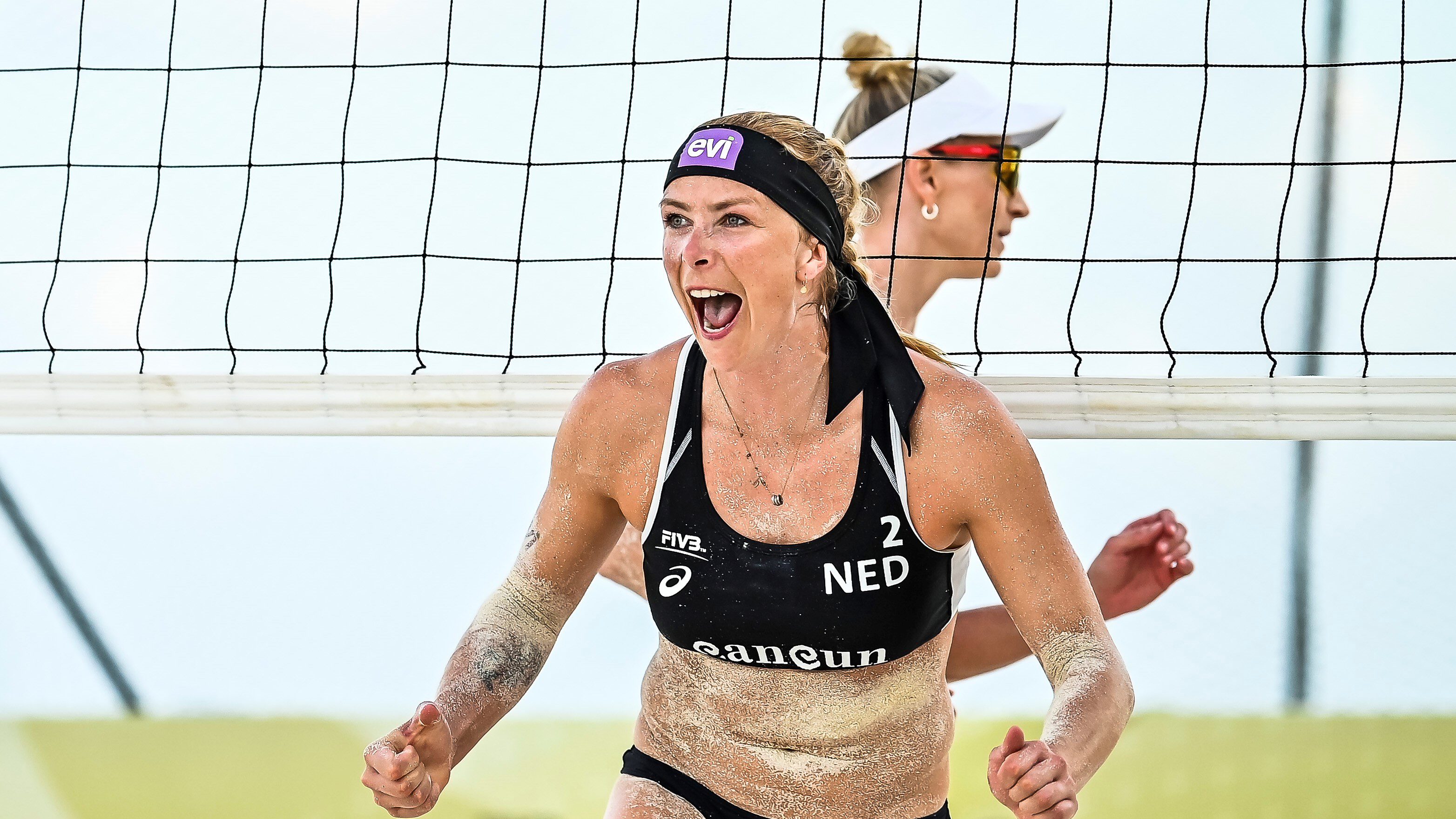 In de kwalificatie zagen we helaas Stam/Schoon en Van Driel/Van Driel sneuvelen. Marleen van Iersel en Pleun Ypma wisten na twee mislukte pogingen dit keer wel door te dringen tot het hoofdtoernooi. In de kwalificaties was het zonder setverlies te sterk voor Mexico en Polen, en zo kon het gisteren in Poule H beginnen aan het hoofdtoernooi. Het stond wederom tegenover een Mexicaans duo; Revuelta/Orellana. Met 21-16 en 21-17 werd het gastland verslagen en later kon het revanche nemen tegen Lidy/Sanchez uit Cuba, die in de kwalificatie van het eerste event nog te sterk waren voor Marleen en Pleun. Na een goede eerste set (21-14) zagen we een spannende twee doorgang, die Van Iersel en Ypma uiteindelijk ook in hun voordeel wisten te beslissen (23-21). Hiermee plaatste het zich direct voor de achtste finales.