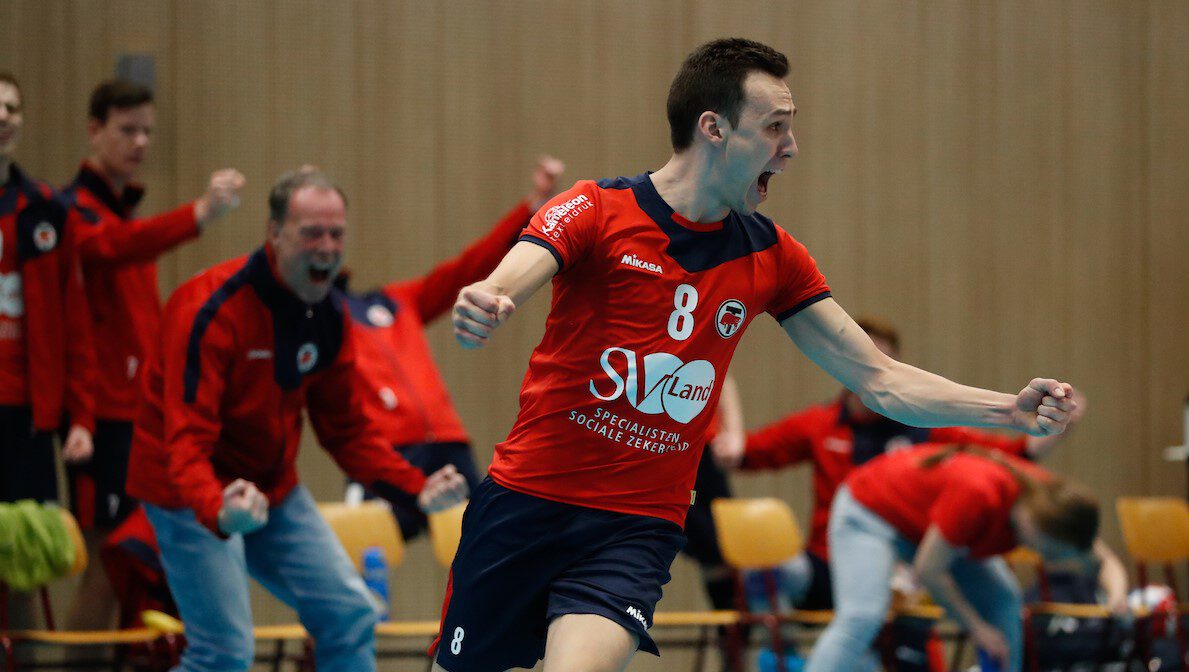 Aanvoerder Dwin Brouwer reageert uitgelaten op de winst van zijn ploeg: “Deze overwinning is echt heerlijk! We hebben een strakke side-out gespeeld en we konden ze gaande de wedstrijd steeds meer onder druk zetten met onze service. Op de belangrijke momenten zijn we voluit blijven gaan en dat heeft ons de winst gebracht”.