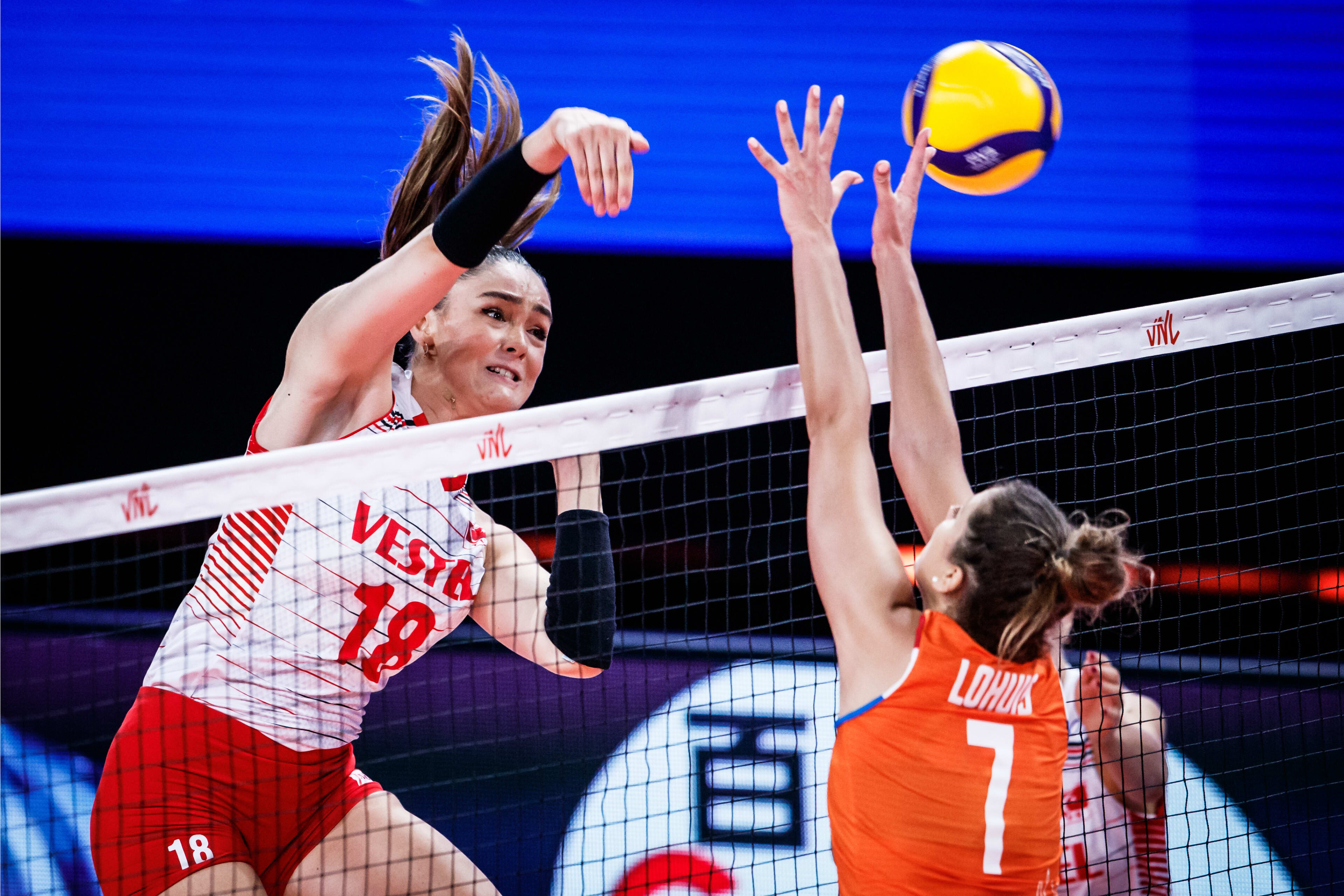Ter voorbereiding op de Spelen is Guidetti dan ook met zijn sterkste selectie aanwezig in de Volleyball Nations League. Met de florissante Ebrar Karakurt, te herkennen aan haar knalroze haar, en de 33-jarige captain Eda Erdem Dündar ging Turkije furieus van start en Nederland moest al snel in de achtervolging. Met Marrit Jasper en Iris Scholten in de basis, ten koste van Anne Buijs en Celeste Plak, maakte Nederland een comeback om halverwege weer op gelijke hoogte te komen. Uiteindelijk kreeg Nederland als eerste meerdere kansen om de set te winnen, maar kon die niet verzilveren. Het was Karakurt, volgend seizoen teamgenoot van Daalderop bij Novara, die met haar scores de set alsnog wist binnen te halen voor Turkije.