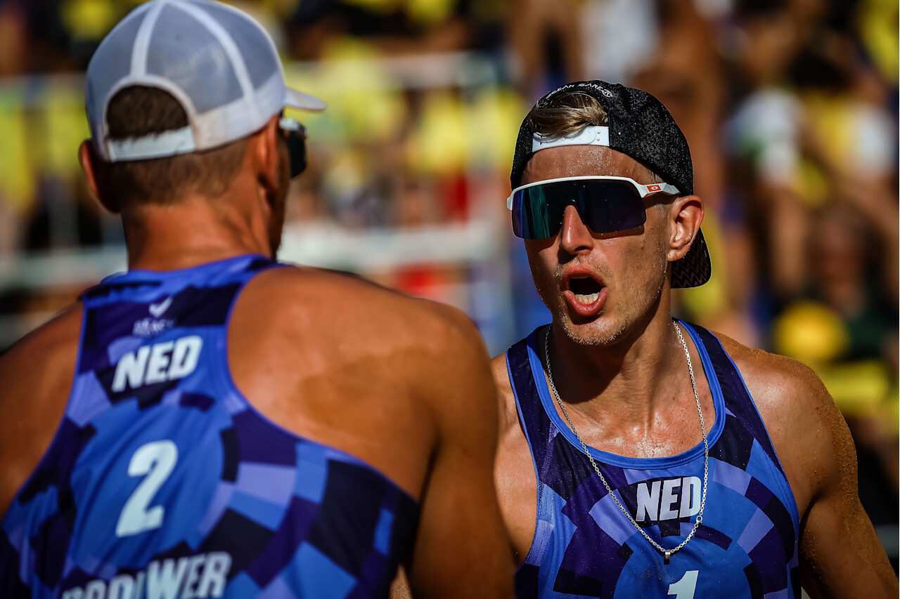 Brouwer/Van de Velde In die strijd kwamen ze landgenoten en trainingsmaatjes Alexander Brouwer en Steven van de Velde tegen. Ook zij kenden een uitstekend toernooi in Joao Pessoa. In hun poule waren ze met Losiak/Bryl (POL) bezig met de strijd voor poulewinst, maar Losiak ging na een service door zijn enkel, waardoor dit duo moest opgeven.