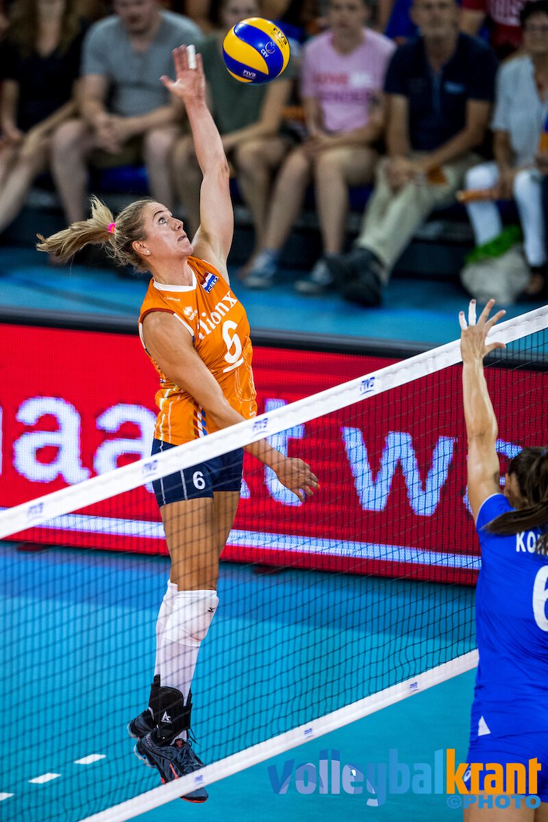 Met Sloetjes in het veld voor Plak begon Nederland een stuk voortvarender aan set twee. Het verschil was al snel drie punten in het voordeel van de Oranje dames en dat bleef gedurende de set staan. Richting het einde van de set werd het verschil ruimer en bij 17-24 was er het eerste setpoint. Na een lange rally was het Sloetjes die via de blokkering raak sloeg. Ook in de derde set leken de Nederlandse dames het betere van het spel te hebben. Duitsland knokte zich echter terug en zorgde voor een gelijke stand (14-14). De teams gingen daarna even gelijk op, maar de service van Sloetjes maakte het verschil. Ze zorgde voor 17-20 en dat verschil werd door Nederland niet meer weggegeven. Op 21-24 sloeg Anne Buijs het setpoint binnen en kwam Oranje op 1-2.