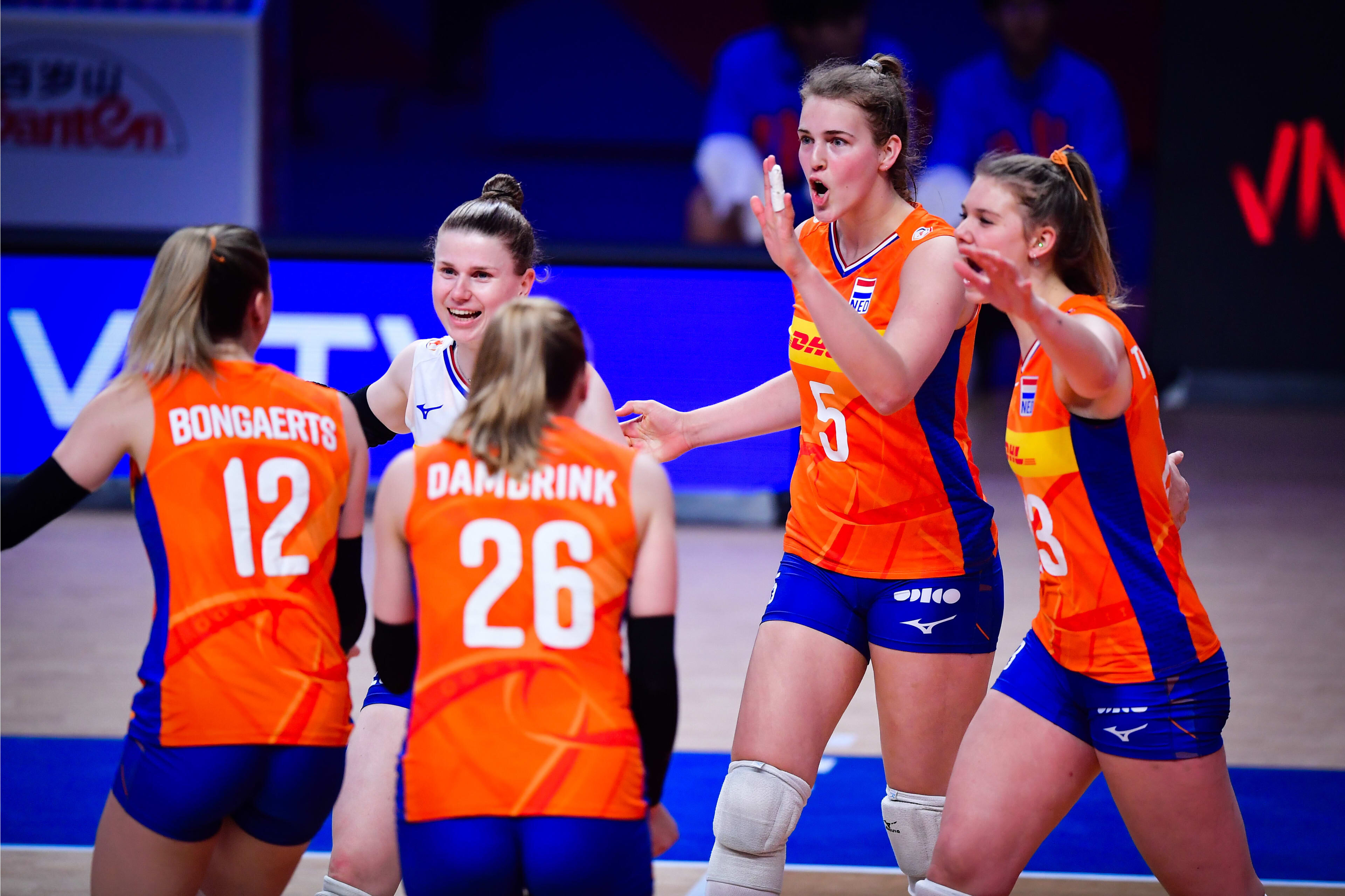 Na de nederlaag tegen China koos bondscoach Koslowski dit keer voor een jonge basisopstelling met Britt Bongaerts, Elles Dambrink, Eline Timmerman, Indy Baijens, Nova Marring, Jolien Knollema en Florien Reesink. Brazilië heeft in deze Volleyball Nations nog niet verloren en wil met een Olympisch waardige selectie ook in de VNL hoge ogen gooien. Met in de basis topspeelsters als Gabi Guimaraes, Ana Christina Da Souza en Ana Carol Da Silva was Brazilië niet van plan om Nederland ook maar iets te gunnen. Dat werd in de eerste set ook gelijk duidelijk, want de Volleybaldames werden overdonderd door de servicedruk en het aanvallende geweld van de Braziliaanse dames. De eerste set was dan ook razendsnel gespeeld, in het voordeel van Brazilië (17-25).