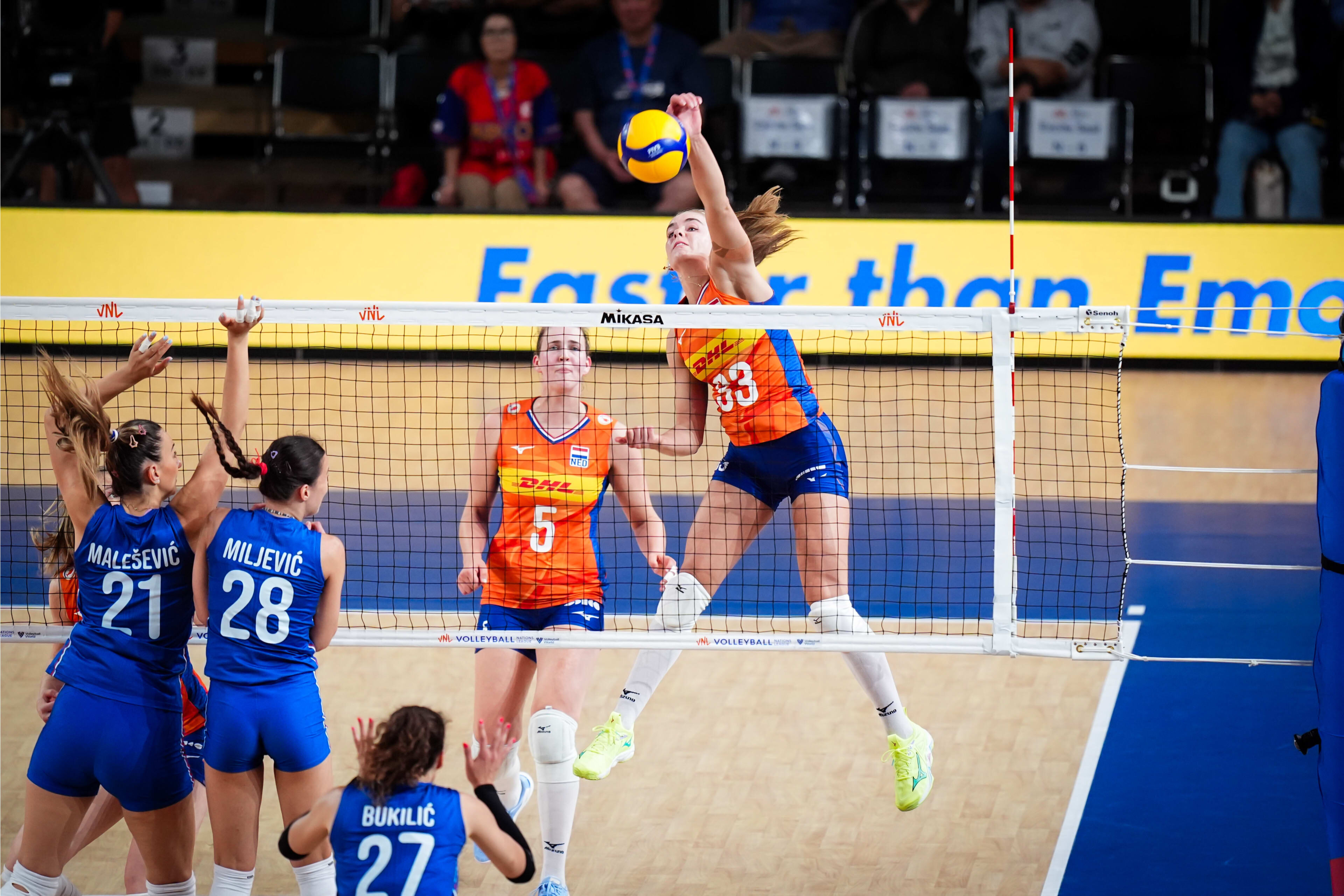 In een week waarin alle sets bepalend zijn om de negende plaats op de wereldranking te behouden, had Nederland het geluk dat het niet de beste speelsters van Servië tegenover zich kreeg. Regerend wereldkampioen Servië, van bondscoach Giovanni Guidetti, heeft ervoor gekozen om met de toppers in eigen land toe te werken naar de Olympische Spelen en een groep met jonge speelsters naar de derde week van de VNL te sturen. Dat betekende kansen voor de Volleybaldames, die bij een overwinning op de nummer acht van de wereld belangrijke punten zouden verdienen voor de wereldranglijst.