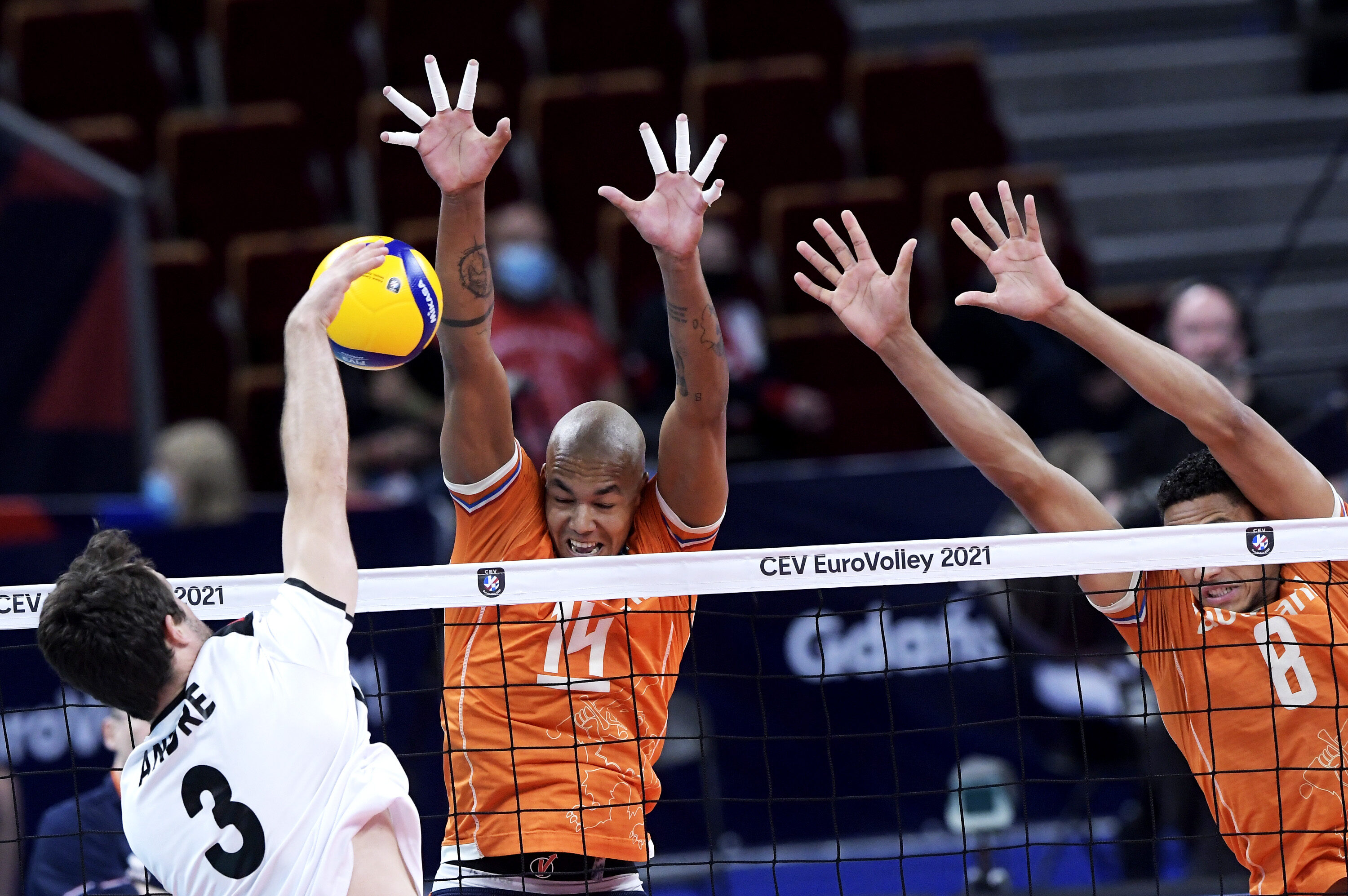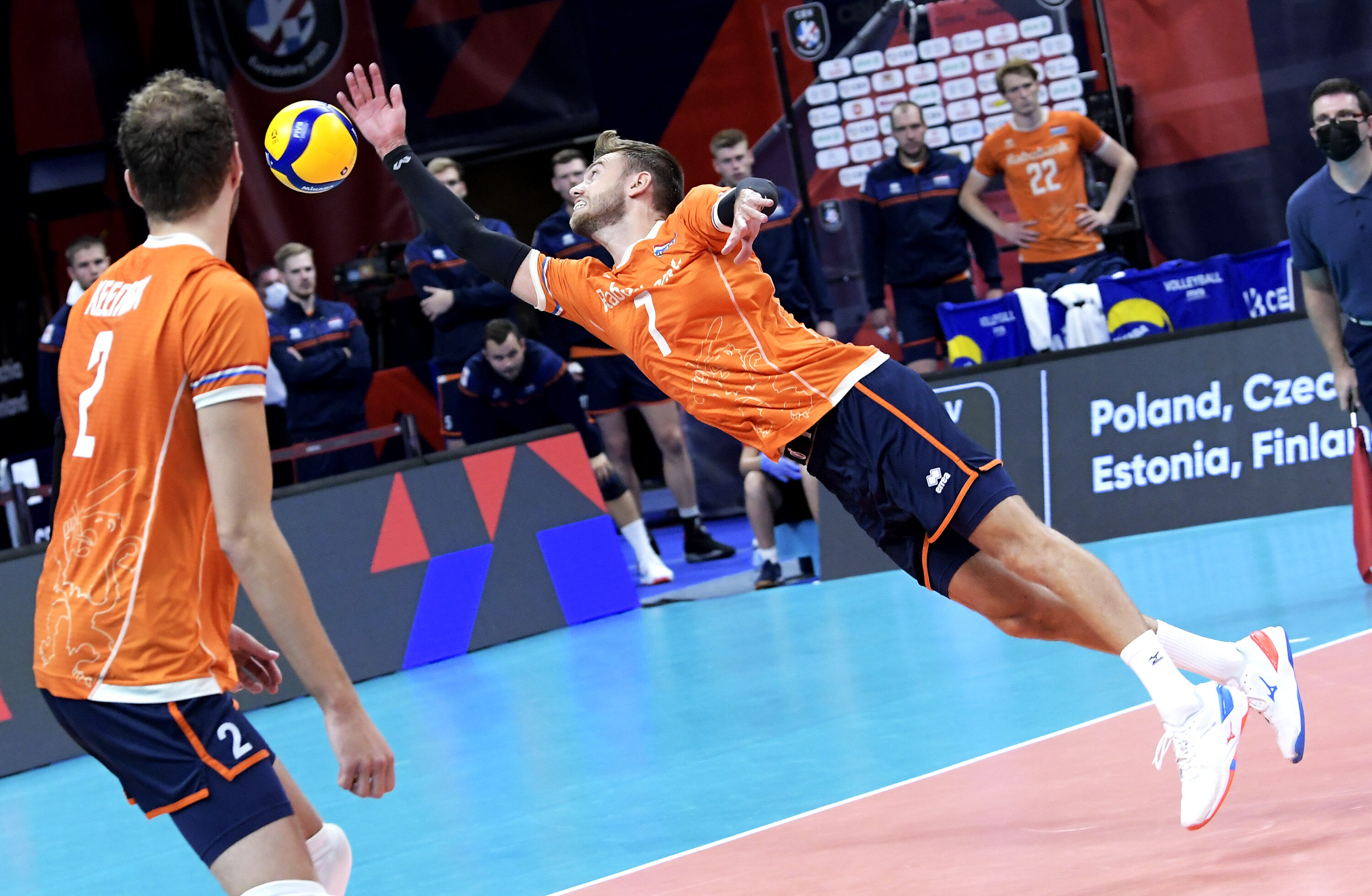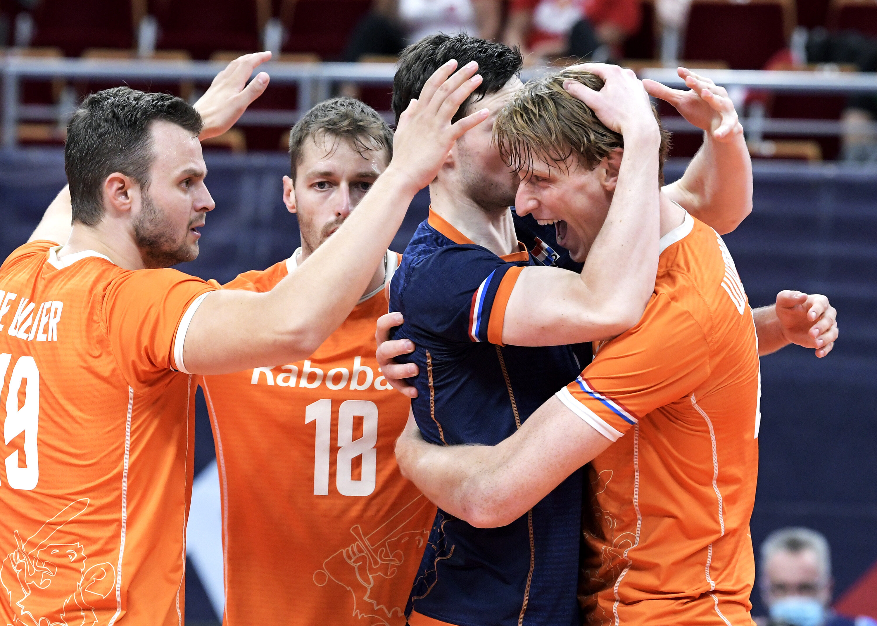 Andringa bracht Oranje daarin met een blok en een ace al snel op 4-2, maar het stugge Portugal bleef in het spoor. Nederland bleef vervolgens in rotatie één steken en het zag Portugal zelfs naar 6-7 gaan. Wat gebeurde er daarna? Nimir Abdelaziz. De twee mooie blokpunten van Parkinson en Wiltenburg waren nog goud waard, maar het was vooral Nimir die zijn team eigenhandig naar de kwartfinale sloeg. Hij zorgde na de kantwissel voor twee snelle punten. Even moest hij nog voor de dubbele wissel naar de kant, maar nadat de side-out niet gemaakt werd kwam hij weer terug en sloeg hij de 14-12 en de bevrijdende 15-13 binnen. Na 12 jaar is het Nederland weer gelukt om zich te plaatsen voor de kwartfinale van het EK.