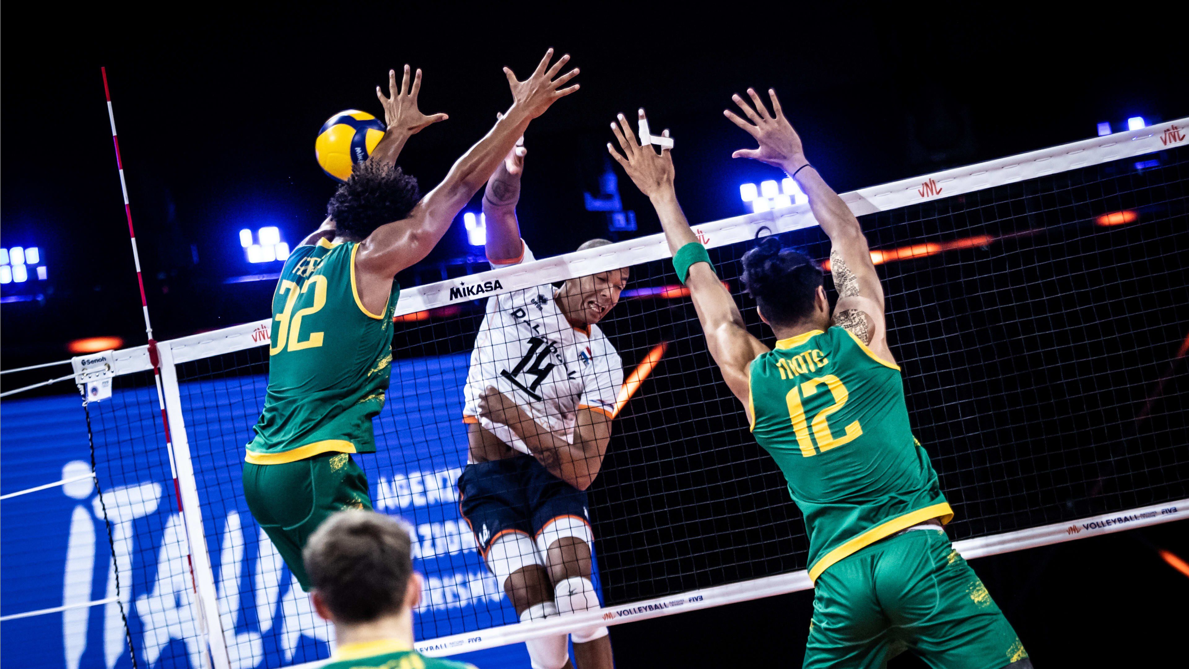 In de eerste set had Abdelaziz zich nog even stilgehouden, maar via een ace zette hij Oranje al snel op 5-2. Australië deed iets terug, maar Parkinson voorkwam met een blok dat zij de aansluiting vonden (9-7). Daarna droeg iedereen netjes bij in het puntenaantal van Nederland. Andringa en Wiltenburg scoorden (15-12), en na meerdere punten van Tuinstra was het wederom Parkinson met een blok die zijn team op 20-16 bracht. Het verschil bleef staan en met een ace sloeg Nimir de tweede set binnen (25-19).