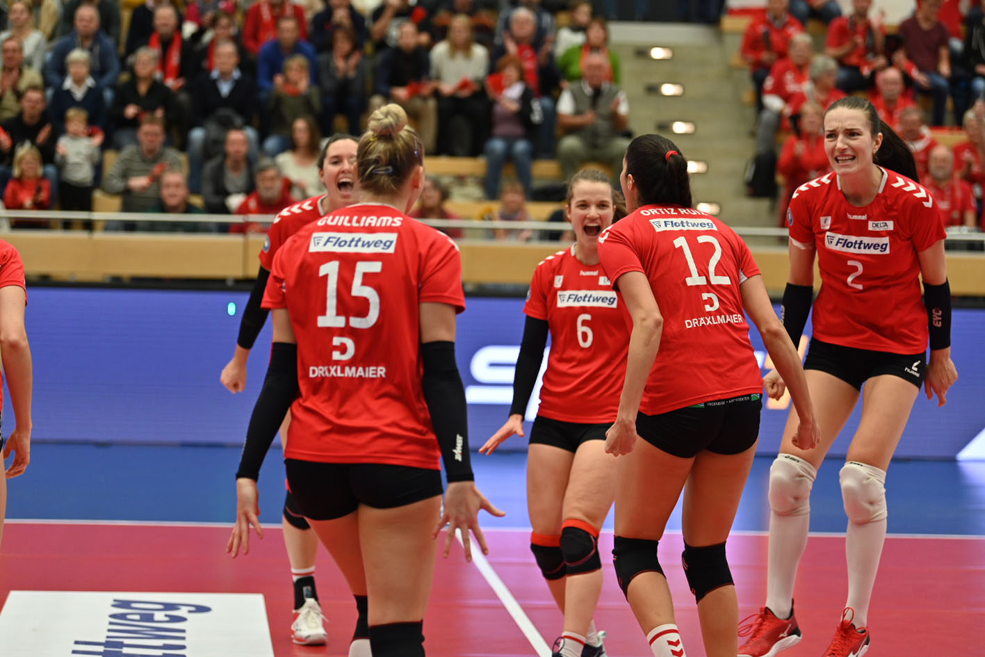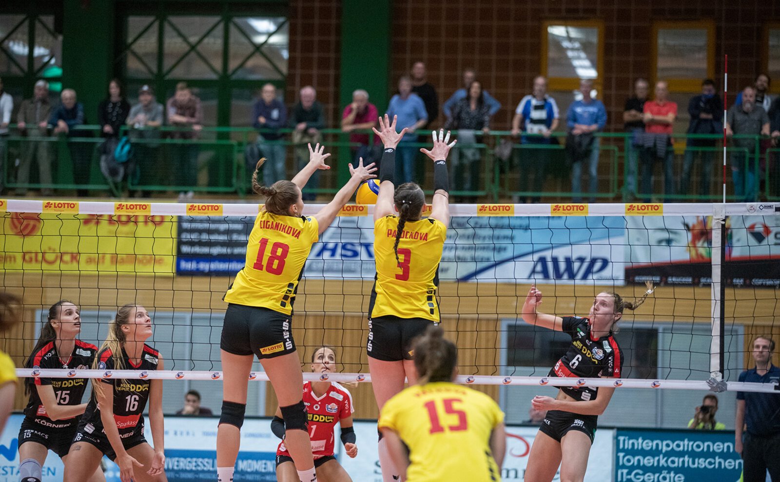 In het voorbije weekend eindigden alle wedstrijden op 3-0. Er lijkt dus een echte afsplitsing te ontstaan tussen de top 5 en de achtervolgers. Stuttgart leidt de dans met 19 punten uit 7 wedstrijden. Schweriner volgt op 18 punten, Potsdam op 17. Aachen en Vilsbiburg doen met 15 en 13 punten nog steeds mee.