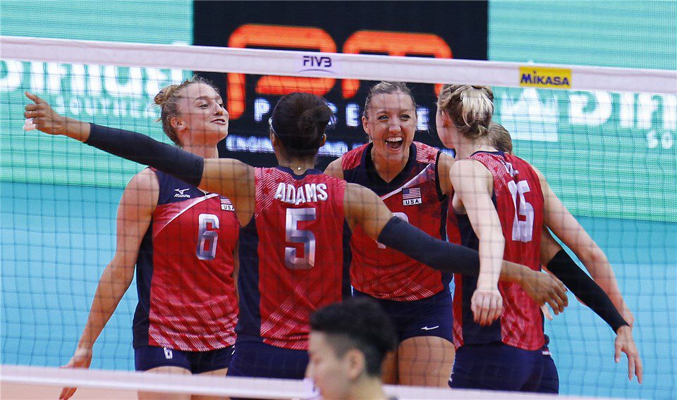 De Amerikaanse volleybalsters kwamen vanmorgen in de beginfase van de openingsset tegen China nog vier punten achter (6-10), maar namen gaandeweg de leiding over. Met 25-21 ging de eerste periode naar de USA. De tweede set was spannend; de grotere foutenlast van China bracht Amerika uiteindelijk ook deze set met 26-24. De derde set leek een kat in het bakkie te worden voor Amerika, dat al snel uitliep naar 12-4. China speelde slecht en had niets in te brengen tegen deze sterk blokkerende USA. De vrouwen in het zwart herpakten zich echter op bewonderingswaardige wijze en zo werd ook deze snel nog aantrekkelijk. Rond de twintig stonden de teams weer bijna naast elkaar, maar een eindsprint van de USA zorgde voor 25-23 en daarmee de 3-0 wedstrijdwinst.