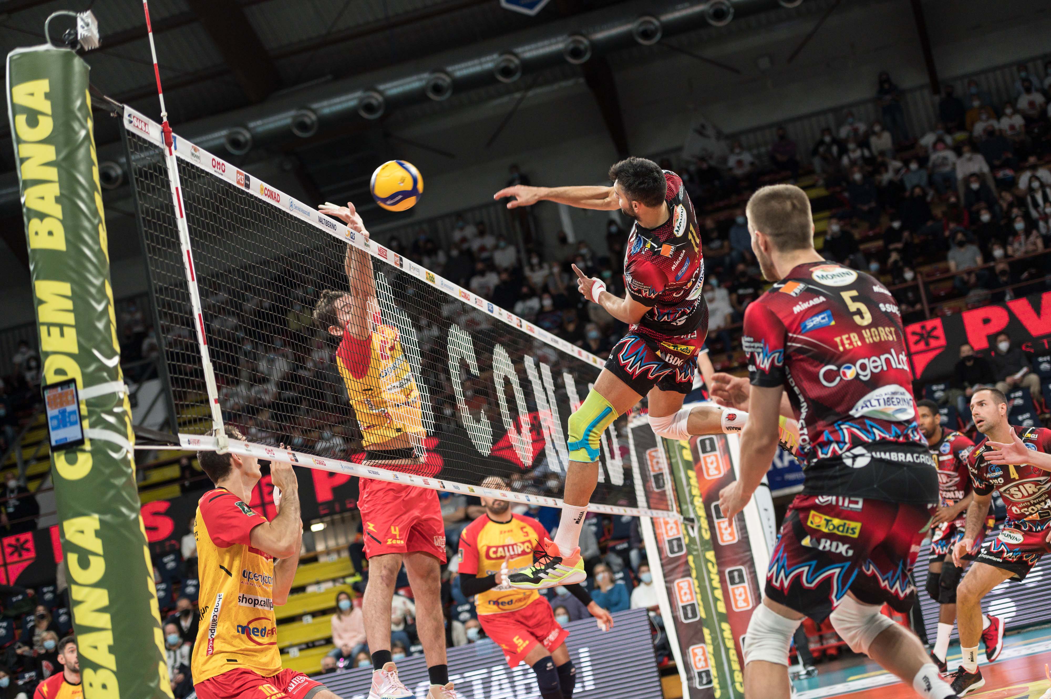 De koploper van de Superlega Perugia had zondag geen moeite met Vibo Valentia. Ondanks 8 foutservices was Perugia sterk genoeg om de eerste met 25-20 te winnen. Het enige moment wanneer Perugia niet op voorsprong stond was het begin van de tweede set, maar door goed blokkerend werk werd dit al snel ongedaan gemaakt (25-22). Het gehavende Vibo Valentia – dat het een maand moet doen zonder de Japanner Nishida – kon met drie pass/lopers in het veld ook in de derde set geen potten breken. Via 25-13 won Peruga met overmacht en behoudt zo de eerste plek in de competitie. Ter Horst kwam alle sets even in het veld en maakte twee van zijn die aanvallen (67%) succesvol af.