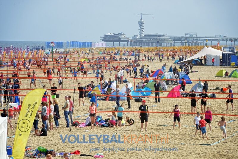 Tv-Sportplezier-presentator Jack van Gelder bracht daarom een bezoekje aan het strand van Scheveningen, waar op 27 juni het wereldrecord voor het grootste beachvolleybaltoernooi ooit werd verbroken.