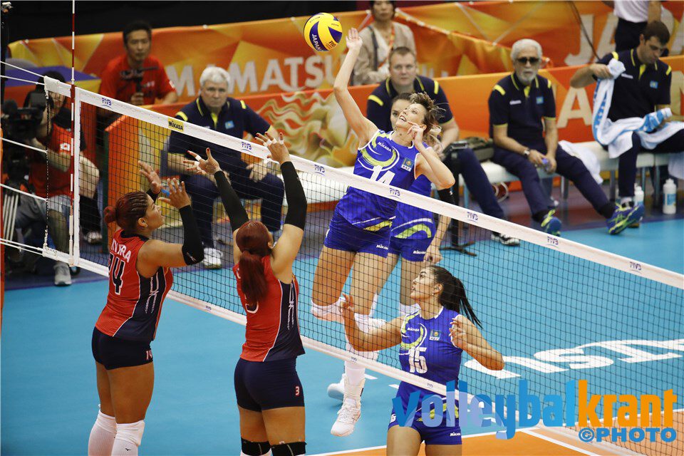 Van te voren werd er veel verwacht van de affiche tussen Servië en Brazilië in Poule D. Toch draaide de wedstrijd uit op een vrij eenvoudige overwinning voor de Servische dames. De basis bij de Serven lag bij een uitstekende receptie en verdediging. Spelverdeelster Maja Ognjenovic kon zo hardhitter Tijana Boškovic op maat bedienen. Boškovic werd topscorer met 24 punten. (25-22, 25-18, 25-19)