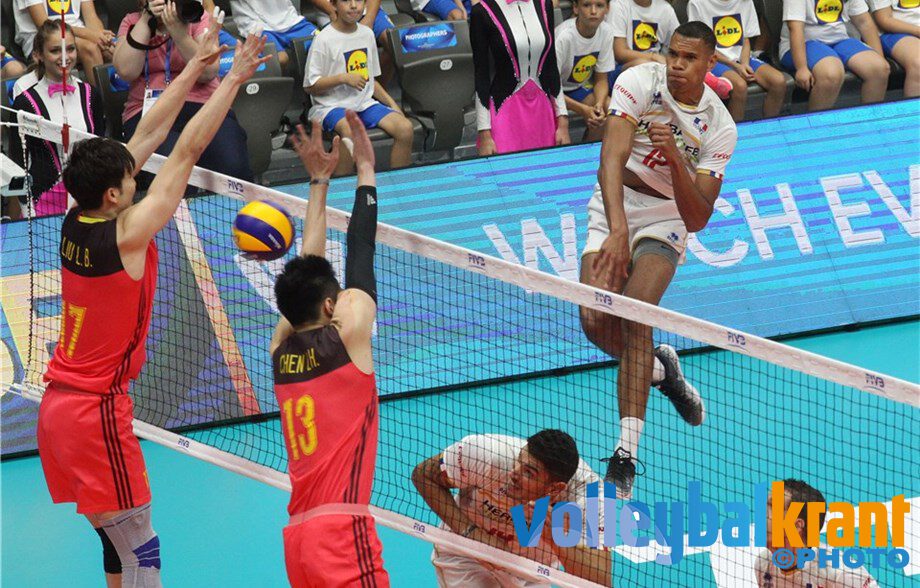 Voordat de Nederlandse mannen de strijd aangingen met de Canadezen, vond eerder in de hal in Ruse de eerste wedstrijd van poule B plaats: Frankrijk- China. De Fransen, die kanshebber zijn voor een medaille, konden zich geen betere start wensen. Vanaf set 1 was hoofdaanvaller Stephan Boyer aan Franse zijde scherp en liet in de openingsset al elf punten noteren. In de daaropvolgende sets begon het echt te lopen en kon aanvoerder Benjamin Toniutti het spel maken. (25-20, 25-21, 25-17)