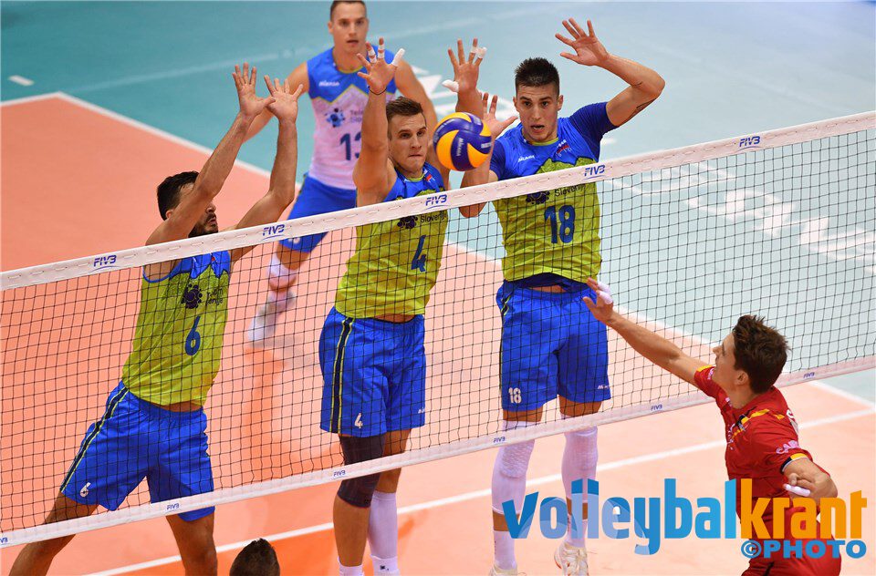 De Belgen hebben een 2-0 voorsprong uit handen gegeven en met 2-3 verloren van Slovenië. Na de eerste twee verloren sets, begon de Sloveense coach Slobodan Kovac met diagonaal Alen Sket en spelverdeler Gregor Ropret. Dit bleek het kantelpunt te zijn in de wedstrijd. Sket scoorde punt na punt ondanks dat de receptie verre van perfect liep aan Sloveense zijde. In de vijfde set, waar het gelijk op ging, werd het verschil gemaakt door een paar prachtige verdedigende acties van de Sloveense libero Jani Kovacic. Een foutservice op 14-13 van de Belgen zorgde voor vreugde bij Slovenië. (22-25, 21-25, 25-19, 25-23, 15-13)