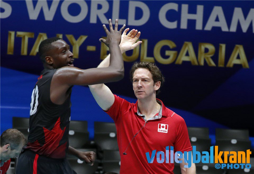 In de poule van Nederland werd gisteren nog een andere wedstrijd gespeeld. Canada wist in vier sets te winnen van China.(25-22, 25-19, 21-25, 25-23) De zege werd mede mogelijk gemaakt door aanvoerder John Gordon Perrin, die 26 punten liet noteren.