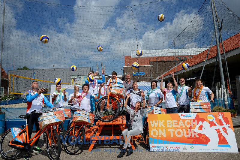 Op woensdag 24 juni stonden vier fietsteams klaar op Schiphol om de ballen van WK toernooidirecteur Bas van de Goor in ontvangst te nemen om op pad te gaan en Nederland enthousiast te maken voor het WK Beachvolleybal. Onderweg stoppen de fietsers bij diverse (beach)volleybalverenigingen, bedrijven, scholen en ziekenhuizen. Bij iedere stop worden de fietsers feestelijk onthaald en vindt er een ludieke actie met de WK bal plaats. Op dag twee fietsten de teams verder door het typische Nederlandse landschap en werden weer vele kilometers afgelegd. Overal werd een gesigneerde WK beachbal afgegeven met de handtekeningen van de Nederlandse beachvolleybaltoppers Robert Meeuwsen/Alexander Brouwer en Madelein Meppelink en Marleen van Iersel.