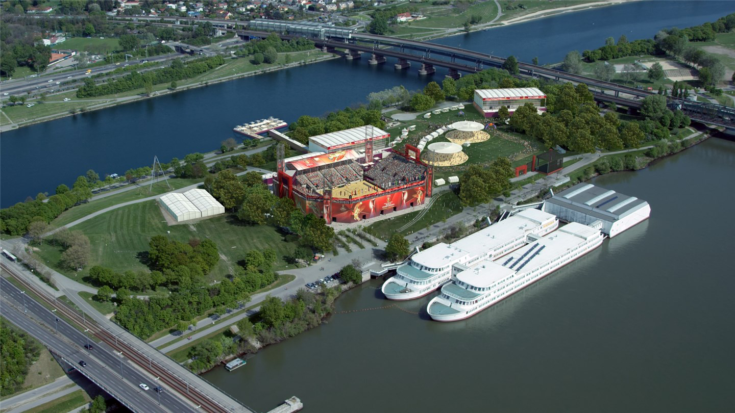 Aan iconische plekken in Wenen geen gebrek. Zo bleek gisteren tijdens de presentatie van de venue voor het WK Beachvolleybal in Oostenrijk deze zomer. In de Spaanse rijschool presenteerde de organisatie dat ze hebben gekozen voor het eiland in de Donau (Donauinsel, Danube island). Het te bouwen stadion kan tienduizend toeschouwers herbergen.