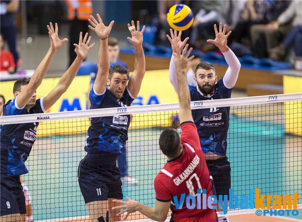 Trento begon het toernooi maandag tegen het enige Aziatische team van het WK: Khatam Ardakan. Uit een aantal berichten bleek op voorhand al dat dit Iraanse team een aantal geblesseerden had, dus had het team van Maarten van Garderen goede hoop op resultaat. Het begin van de wedstrijd liet echter dat Khatam wel degelijk kan volleyballen. Het nam een 5-2 voorsprong, maar toen Davide Candellaro op serve kwam was het gat al snel dicht. Het verder verloop van de wedstrijd was eenzijdig te noemen. Op een paar passfoutjes van de Italiaanse ploeg na was het duidelijk een klasse beter en na 75 minuten spelen was de eerste overwinning een feit. Van Garderen kwam niet in het veld.