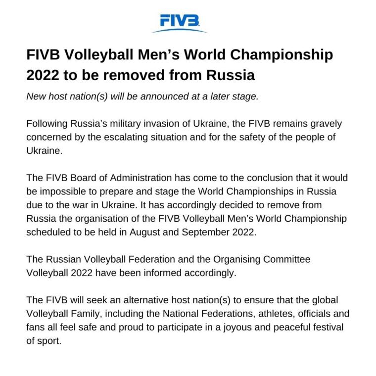 Polen, dat samen met Nederland het WK vrouwen 2022 organiseert, had al meteen aangegeven ook het WK mannen te willen organiseren. Ook Italië lijkt een kandidaat te zijn als nieuwe locatie voor het WK. Net zoals het WK vrouwen is ook organisatie door verschillende landen een optie. De begindatum van het WK volleybal mannen is 26 augustus.
