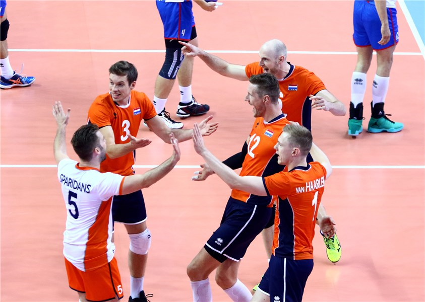 De mannen van Gido Vermeulen konden deze lijn niet doortrekken in de derde periode. De bondscoach vroeg om een sneller spel en meer emotie in het veld van zijn mannen en zag hen uiteindelijk de winst pakken, al ging dat niet gemakkelijk. Maarten van Garderen was met een ace en een harde aanval in de rechtdoor belangrijk in de spannende eindfase, die met 25-23 op Hollands conto werd geschreven.