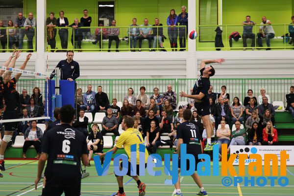 Tja, na zo’n wedstrijd kun je dan de slaap maar slecht vatten. Het gevoel was erg dubbel, want we hebben echt goed gespeeld, gestreden en mooie dingen laten zien. Precies wat we wilden. Maar dan zo nipt verliezen is zuur. We kunnen aan de ene kant constateren dat we bijvoorbeeld serverend nog beter moeten (22 keer fout en te weinig series), maar ook dat er veel goed ging (knappe invalbeurt van Joris, prima meespelen van nieuweling Bas, 21 aanvalspunten de man van Lars en Erwin, etc.). En dan het publiek op de banken krijgen is ook geweldig mooi. Hier doen we het natuurlijk allemaal voor.