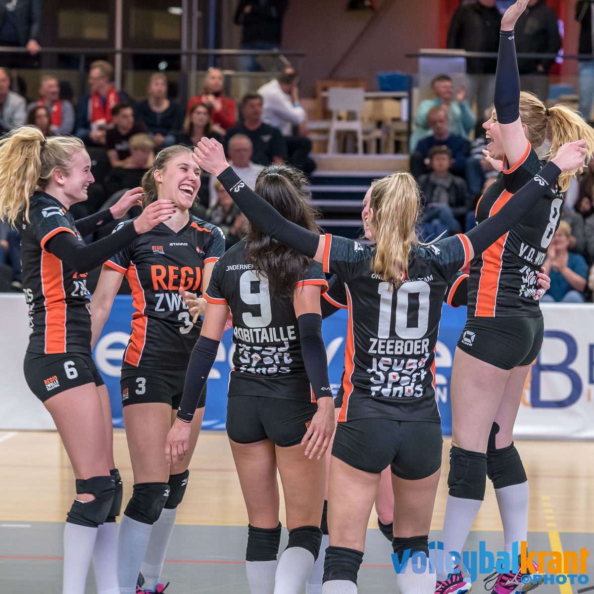Voor Zwolle was de wedstrijd tegen Sneek de laatste kans om aansluiting te vinden bij de tweede plek, terwijl Sneek met een overwinning Zwolle definitief had kunnen afschudden. Set één ging nog wel nipt naar de gasten, die bij de big points het hoofd koel wisten te houden. Vooral aan de hand van Paula Boonstra kwam het Friese team via 26-28 op een 0-1 voorsprong. Dat betekende voor de thuisploeg dat er drie sets achter elkaar gewonnen moesten worden. Het lukte het team van Wilfried Groothuis om het spel om te draaien en Sneek onder druk te zetten. Met goed volleybal had Zwolle in de twee daaropvolgende sets steeds het initiatief en lukte het de ploeg van Abe Meininger niet om dat te doorbreken. Met 25-18 en 25-16 stond er de 2-1 voorsprong op het scorebord.