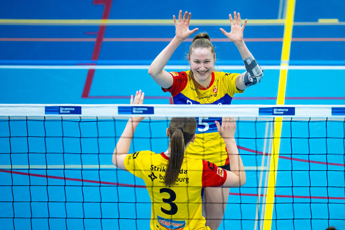Kort daarop volgt SSC Palmberg Schwerin dat het dit weekend lastig had met VC Wiesbaden. Aan de hand van Elles Dambrink won de ploeg van bondscoach Felix Koslowski in vijf sets. Dankzij haar twintig punten werd Dambrink al voor de zesde keer dit seizoen gekozen tot gouden MVP, net zo vaak als Bongaerts waardoor zij met z’n tweeën die ranking aanvoeren. Indy Baijens (18 punten, 63% aanval) en Nova Marring (11 punten, 3 aces) hadden ook een aandeel in de zege. Noa de Vos had één korte invalbeurt voor VC Wiesbaden.